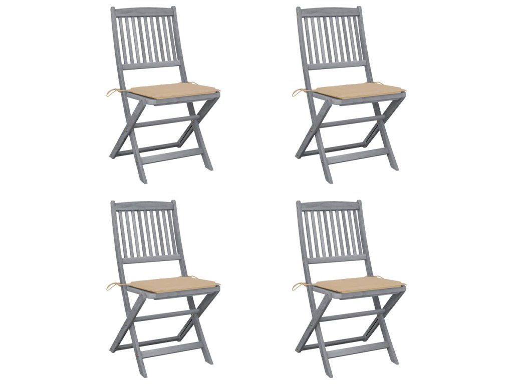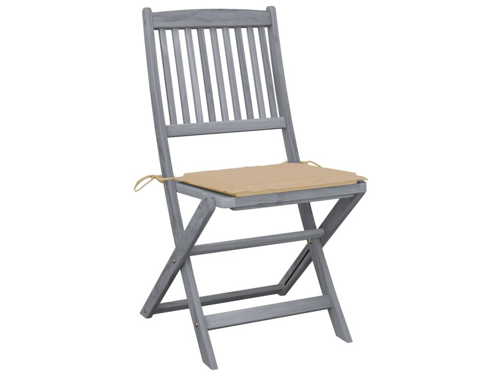 Tieto jedálenské stoličky sú vyrobené z masívneho akáciového dreva, tropického tvrdého dreva, ktoré je odolné voči poveternostným vplyvom a trvácne pre dlhé roky používania. Akáciový masív má dostatočnú silu, aby uniesol zaťaženie, ale odolá aj dlhodobému používaniu. Sivý premývaný povrch sa ľahko čistí vlhkou handričkou. Keď sa stoličky nepoužívajú, dajú sa sklopiť, aby sa ušetrilo miesto. Pribalený vankúš poskytuje vysoké pohodlie pri oddychu alebo stolovaní. Každý vankúš má dve sady šnúrok, pomocou ktorých ho pevne pripevníte k stoličke.