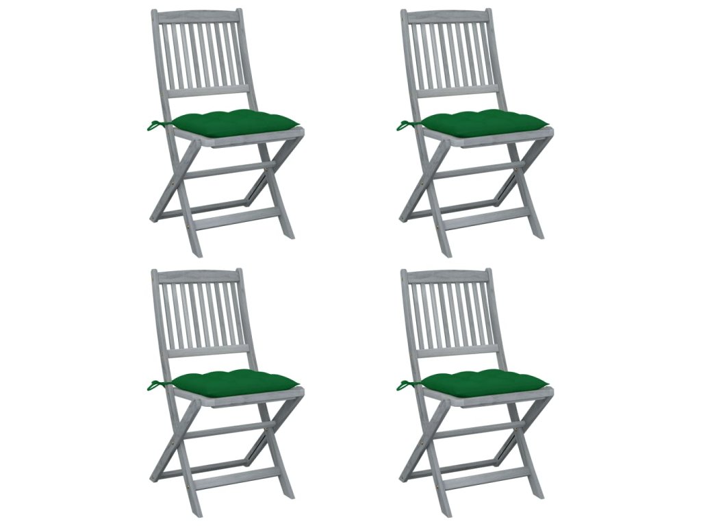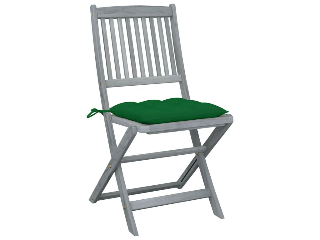 Tieto jedálenské stoličky sú vyrobené z masívneho akáciového dreva, tropického tvrdého dreva, ktoré je odolné voči poveternostným vplyvom a trvácne pre dlhé roky používania. Akáciový masív má dostatočnú silu, aby uniesol zaťaženie, ale odolá aj dlhodobému používaniu. Sivý premývaný povrch sa ľahko čistí vlhkou handričkou. Keď sa stoličky nepoužívajú, dajú sa sklopiť, aby sa ušetrilo miesto. Pribalený vankúš poskytuje vysoké pohodlie pri oddychu alebo stolovaní. Každý vankúš má dve sady šnúrok, pomocou ktorých ho pevne pripevníte k stoličke.