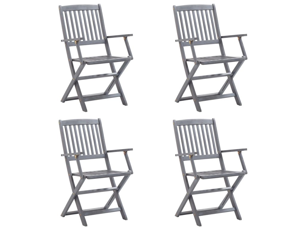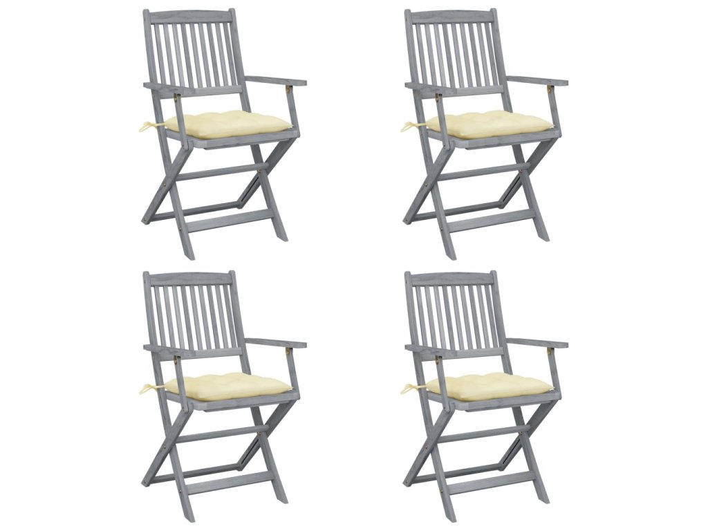 Tieto jedálenské stoličky sú vyrobené z masívneho akáciového dreva, tropického tvrdého dreva, ktoré je odolné voči poveternostným vplyvom a trvácne pre dlhé roky používania. Akáciový masív má dostatočnú silu, aby uniesol zaťaženie, ale odolá aj dlhodobému používaniu. Sivý premývaný povrch sa ľahko čistí vlhkou handričkou. Keď sa stoličky nepoužívajú, dajú sa sklopiť, aby sa ušetrilo miesto. Pribalený vankúš poskytuje vysoké pohodlie pri oddychu alebo stolovaní. Každý vankúš má dve sady šnúrok, pomocou ktorých ho pevne pripevníte k stoličke.