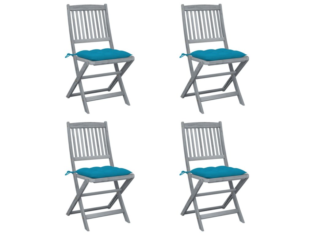 Tieto jedálenské stoličky sú vyrobené z masívneho akáciového dreva, tropického tvrdého dreva, ktoré je odolné voči poveternostným vplyvom a trvácne pre dlhé roky používania. Akáciový masív má dostatočnú silu, aby uniesol zaťaženie, ale odolá aj dlhodobému používaniu. Sivý premývaný povrch sa ľahko čistí vlhkou handričkou. Keď sa stoličky nepoužívajú, dajú sa sklopiť, aby sa ušetrilo miesto. Pribalený vankúš poskytuje vysoké pohodlie pri oddychu alebo stolovaní. Každý vankúš má dve sady šnúrok, pomocou ktorých ho pevne pripevníte k stoličke.