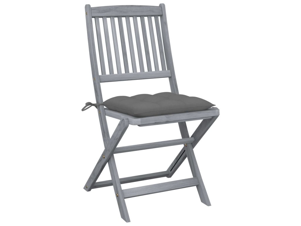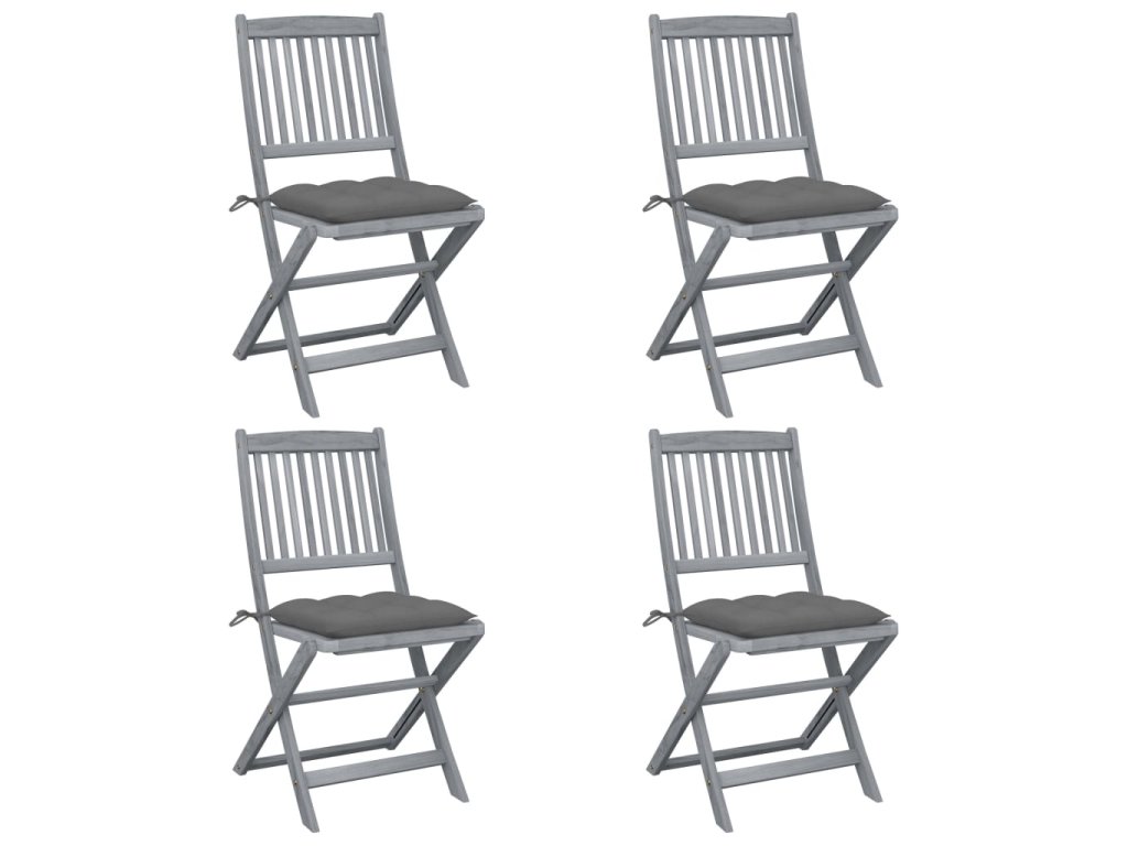 Tieto jedálenské stoličky sú vyrobené z masívneho akáciového dreva, tropického tvrdého dreva, ktoré je odolné voči poveternostným vplyvom a trvácne pre dlhé roky používania. Akáciový masív má dostatočnú silu, aby uniesol zaťaženie, ale odolá aj dlhodobému používaniu. Sivý premývaný povrch sa ľahko čistí vlhkou handričkou. Keď sa stoličky nepoužívajú, dajú sa sklopiť, aby sa ušetrilo miesto. Pribalený vankúš poskytuje vysoké pohodlie pri oddychu alebo stolovaní. Každý vankúš má dve sady šnúrok, pomocou ktorých ho pevne pripevníte k stoličke.