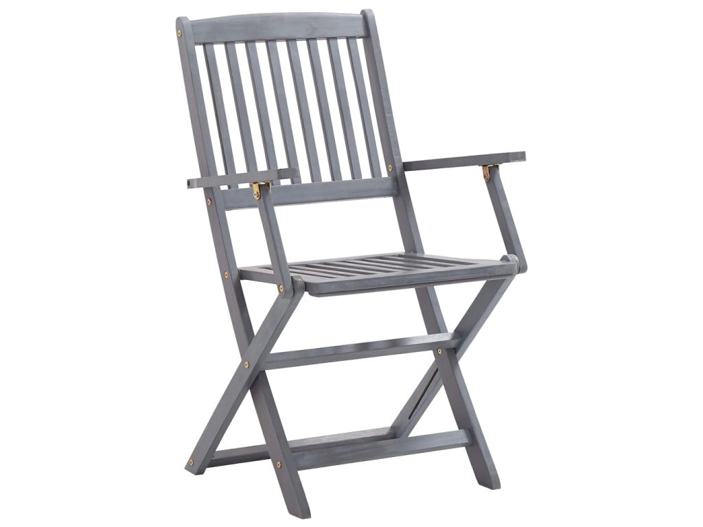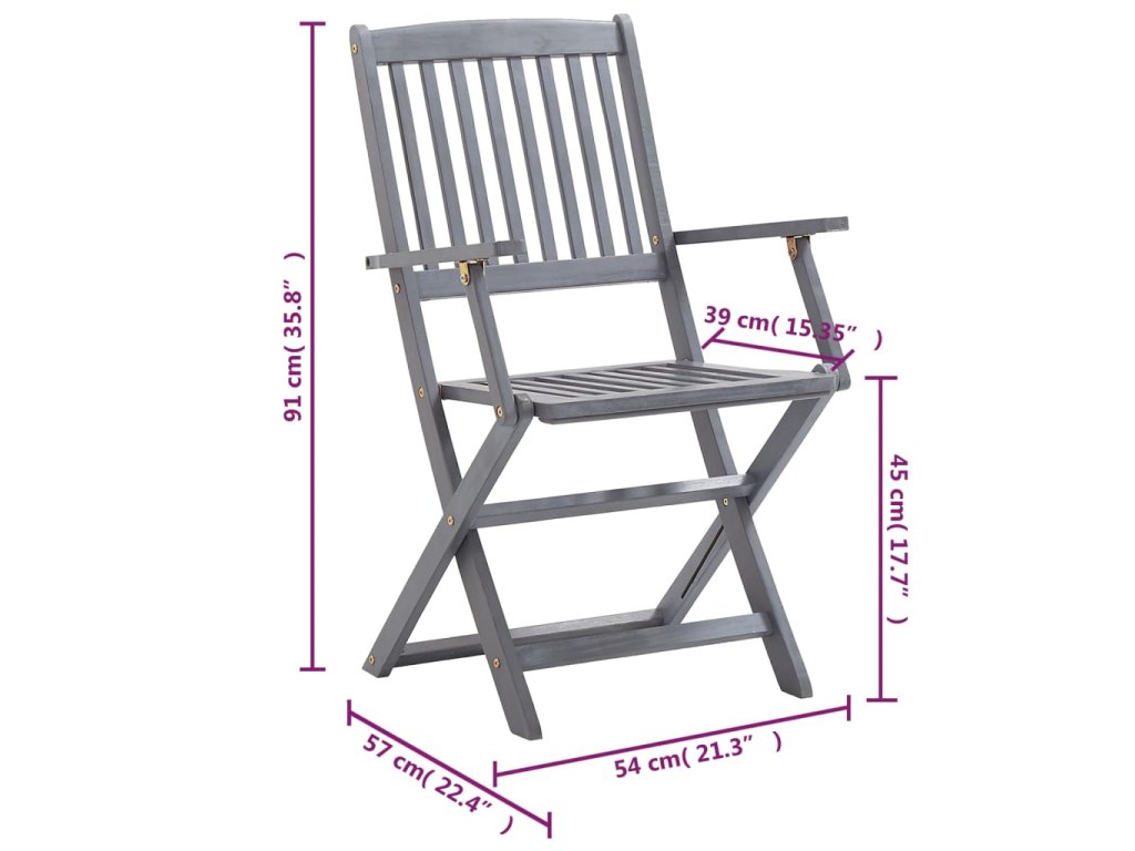 Tieto jedálenské stoličky sú vyrobené z masívneho akáciového dreva, tropického tvrdého dreva, ktoré je odolné voči poveternostným vplyvom a trvácne pre dlhé roky používania. Akáciový masív má dostatočnú silu, aby uniesol zaťaženie, ale odolá aj dlhodobému používaniu. Sivý premývaný povrch sa ľahko čistí vlhkou handričkou. Keď sa stoličky nepoužívajú, dajú sa sklopiť, aby sa ušetrilo miesto. Pribalený vankúš poskytuje vysoké pohodlie pri oddychu alebo stolovaní. Každý vankúš má dve sady šnúrok, pomocou ktorých ho pevne pripevníte k stoličke.