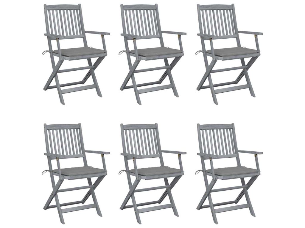 Tieto jedálenské stoličky sú vyrobené z masívneho akáciového dreva, tropického tvrdého dreva, ktoré je odolné voči poveternostným vplyvom a trvácne pre dlhé roky používania. Akáciový masív má dostatočnú silu, aby uniesol zaťaženie, ale odolá aj dlhodobému používaniu. Sivý premývaný povrch sa ľahko čistí vlhkou handričkou. Keď sa stoličky nepoužívajú, dajú sa sklopiť, aby sa ušetrilo miesto. Pribalený vankúš poskytuje vysoké pohodlie pri oddychu alebo stolovaní. Každý vankúš má dve sady šnúrok, pomocou ktorých ho pevne pripevníte k stoličke.