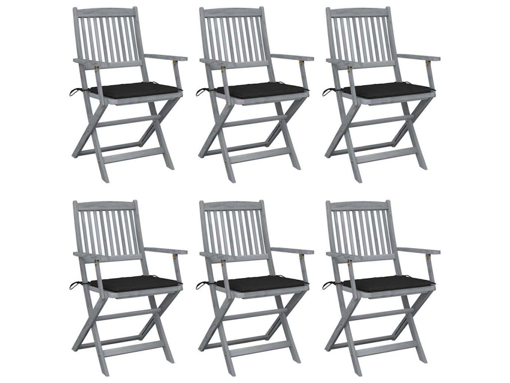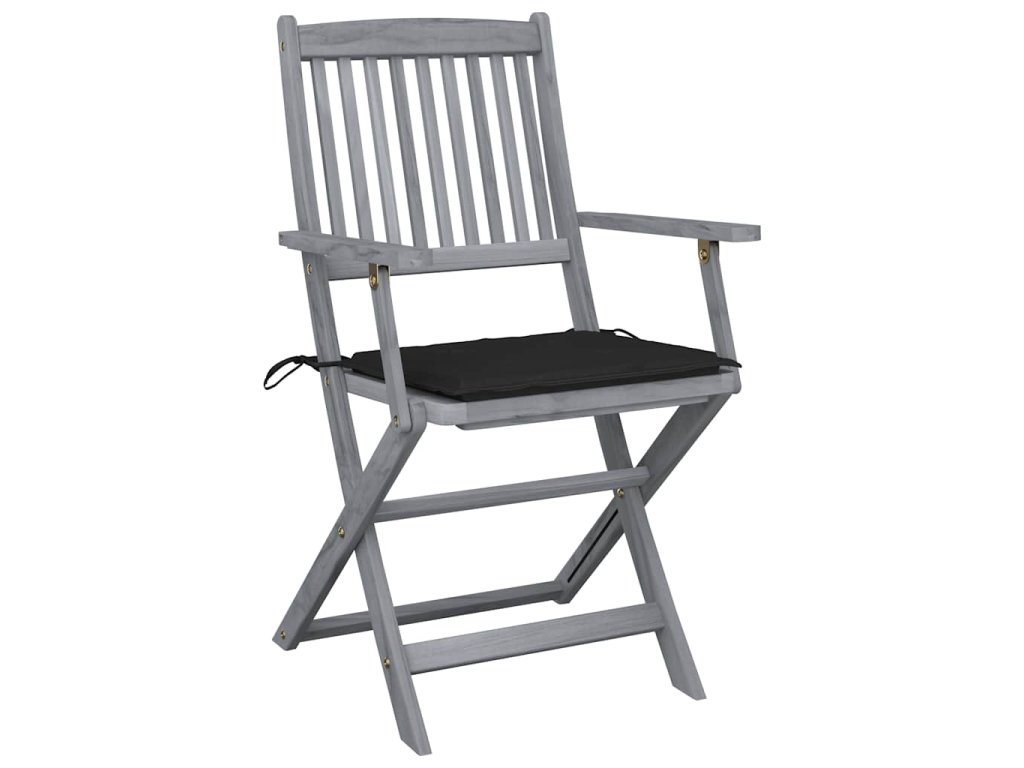 Tieto jedálenské stoličky sú vyrobené z masívneho akáciového dreva, tropického tvrdého dreva, ktoré je odolné voči poveternostným vplyvom a trvácne pre dlhé roky používania. Akáciový masív má dostatočnú silu, aby uniesol zaťaženie, ale odolá aj dlhodobému používaniu. Sivý premývaný povrch sa ľahko čistí vlhkou handričkou. Keď sa stoličky nepoužívajú, dajú sa sklopiť, aby sa ušetrilo miesto. Pribalený vankúš poskytuje vysoké pohodlie pri oddychu alebo stolovaní. Každý vankúš má dve sady šnúrok, pomocou ktorých ho pevne pripevníte k stoličke.
