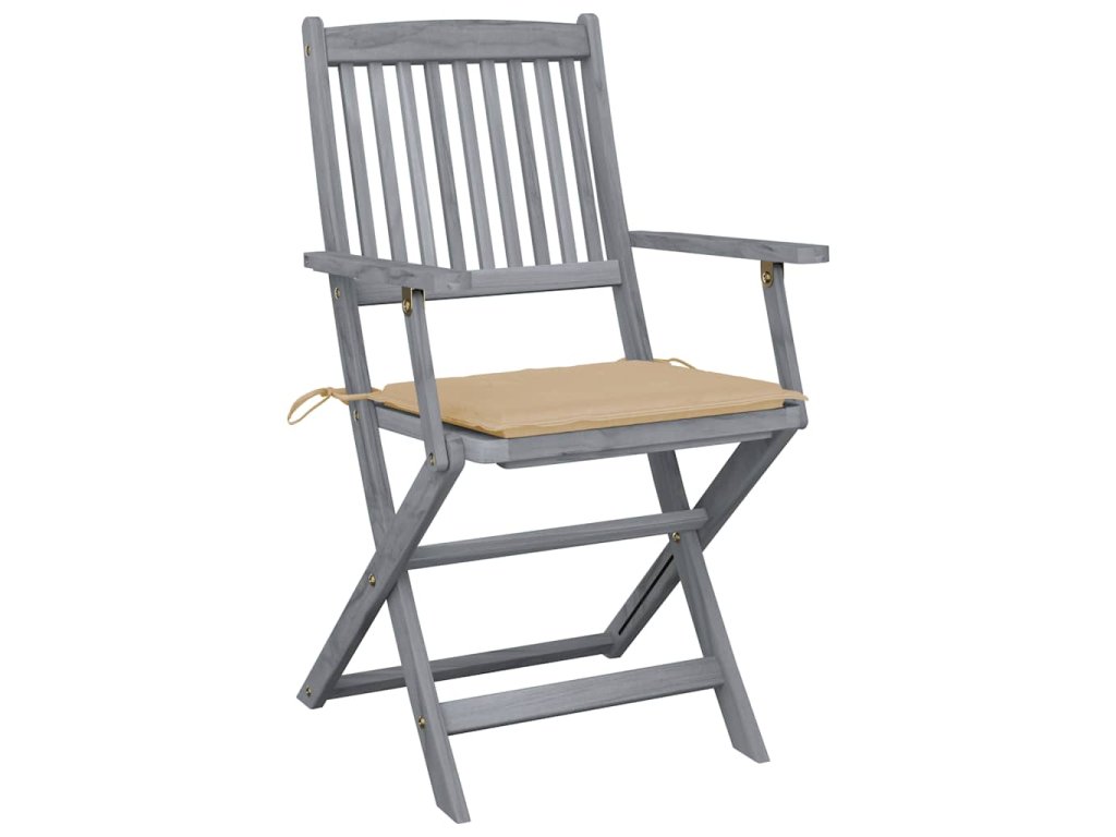 Tieto jedálenské stoličky sú vyrobené z masívneho akáciového dreva, tropického tvrdého dreva, ktoré je odolné voči poveternostným vplyvom a trvácne pre dlhé roky používania. Akáciový masív má dostatočnú silu, aby uniesol zaťaženie, ale odolá aj dlhodobému používaniu. Sivý premývaný povrch sa ľahko čistí vlhkou handričkou. Keď sa stoličky nepoužívajú, dajú sa sklopiť, aby sa ušetrilo miesto. Pribalený vankúš poskytuje vysoké pohodlie pri oddychu alebo stolovaní. Každý vankúš má dve sady šnúrok, pomocou ktorých ho pevne pripevníte k stoličke.