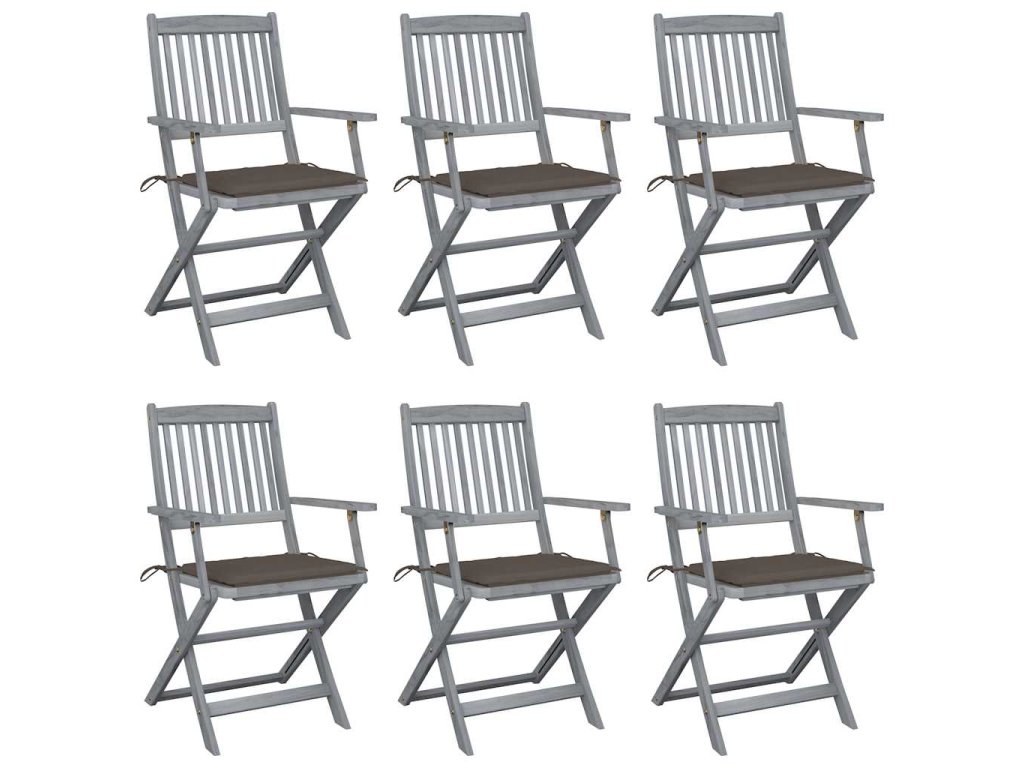 Tieto jedálenské stoličky sú vyrobené z masívneho akáciového dreva, tropického tvrdého dreva, ktoré je odolné voči poveternostným vplyvom a trvácne pre dlhé roky používania. Akáciový masív má dostatočnú silu, aby uniesol zaťaženie, ale odolá aj dlhodobému používaniu. Sivý premývaný povrch sa ľahko čistí vlhkou handričkou. Keď sa stoličky nepoužívajú, dajú sa sklopiť, aby sa ušetrilo miesto. Pribalený vankúš poskytuje vysoké pohodlie pri oddychu alebo stolovaní. Každý vankúš má dve sady šnúrok, pomocou ktorých ho pevne pripevníte k stoličke.
