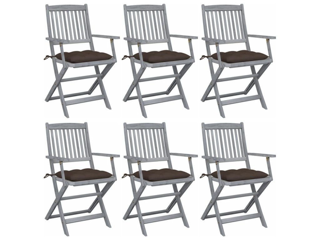 Tieto jedálenské stoličky sú vyrobené z masívneho akáciového dreva, tropického tvrdého dreva, ktoré je odolné voči poveternostným vplyvom a trvácne pre dlhé roky používania. Akáciový masív má dostatočnú silu, aby uniesol zaťaženie, ale odolá aj dlhodobému používaniu. Sivý premývaný povrch sa ľahko čistí vlhkou handričkou. Keď sa stoličky nepoužívajú, dajú sa sklopiť, aby sa ušetrilo miesto. Pribalený vankúš poskytuje vysoké pohodlie pri oddychu alebo stolovaní. Každý vankúš má dve sady šnúrok, pomocou ktorých ho pevne pripevníte k stoličke.