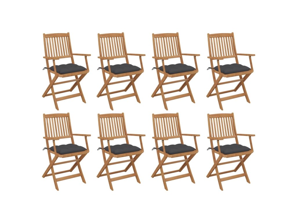 Tieto jedálenské stoličky sú vyrobené z prvotriedneho akáciového dreva, tropického tvrdého dreva, ktoré je odolné voči poveternostným vplyvom a vydrží celé roky používania. Povrch s olejovou povrchovou úpravou sa ľahko čistí vlhkou handričkou. Keď sa stoličky nepoužívajú, dajú sa sklopiť, aby sa ušetrilo miesto. Navyše, pribalené vankúše poskytujú ďalšie pohodlie. Každý vankúš má 2 sady šnúrok, ktoré ho pevne pripevnia k stoličke.