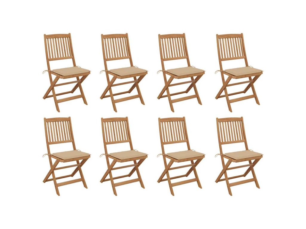 Tieto jedálenské stoličky sú vyrobené z prvotriedneho akáciového dreva, tropického tvrdého dreva, ktoré je odolné voči poveternostným vplyvom a vydrží celé roky používania. Povrch s olejovou povrchovou úpravou sa ľahko čistí vlhkou handričkou. Keď sa stoličky nepoužívajú, dajú sa sklopiť, aby sa ušetrilo miesto. Navyše, pribalené vankúše poskytujú ďalšie pohodlie. Každý vankúš má 2 sady šnúrok, ktoré ho pevne pripevnia k stoličke.