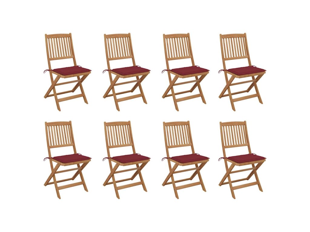 Tieto jedálenské stoličky sú vyrobené z prvotriedneho akáciového dreva, tropického tvrdého dreva, ktoré je odolné voči poveternostným vplyvom a vydrží celé roky používania. Povrch s olejovou povrchovou úpravou sa ľahko čistí vlhkou handričkou. Keď sa stoličky nepoužívajú, dajú sa sklopiť, aby sa ušetrilo miesto. Navyše, pribalené vankúše poskytujú ďalšie pohodlie. Každý vankúš má 2 sady šnúrok, ktoré ho pevne pripevnia k stoličke.