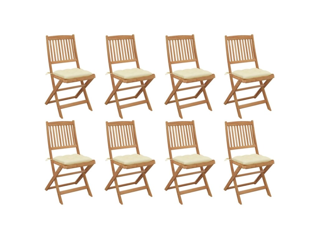 Tieto jedálenské stoličky sú vyrobené z prvotriedneho akáciového dreva, tropického tvrdého dreva, ktoré je odolné voči poveternostným vplyvom a vydrží celé roky používania. Povrch s olejovou povrchovou úpravou sa ľahko čistí vlhkou handričkou. Keď sa stoličky nepoužívajú, dajú sa sklopiť, aby sa ušetrilo miesto. Navyše, pribalené vankúše poskytujú ďalšie pohodlie. Každý vankúš má 2 sady šnúrok, ktoré ho pevne pripevnia k stoličke.