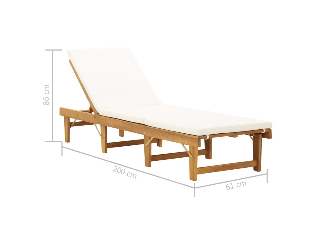Záhradné ležadlo je ľahko čistiteľné, odolné a vhodné na každodenné použitie, pretože je vyrobené z masívneho akáciového dreva. Vyniká svojím skladacím dizajnom a dá sa vytiahnuť a nastaviť do 4 rôznych výšok pre nájdenie tej najpohodlnejšej polohy na sedenie alebo ležanie. Nahrubo polstrovaný vankúš poskytne maximálne pohodlie a dodatočnú oporu. Vďaka zipsovému dizajnu je poťah vankúša odnímateľný pre ľahké pranie.