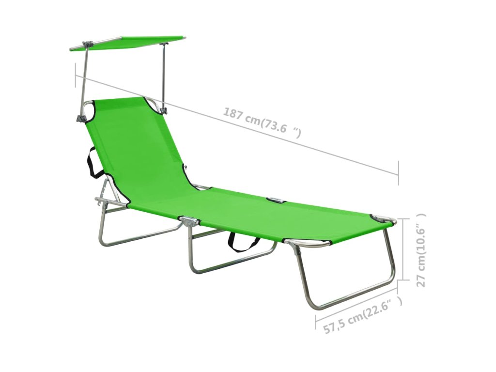 Toto vysokokvalitné ležadlo je vybavené nastaviteľnou strieškou, takže si môžete užiť opaľovanie bez obáv z priameho slnečného svetla. Operadlo je nastaviteľné a umožňuje vám nájsť si tú najpohodlnejšiu polohu. Rám je vyrobený z hliníka s práškovanou povrchovou úpravou, je odolný voči poveternostným vplyvom. Maximálna nosnosť je 120 kg. Vďaka svojmu skladaciemu dizajnu sa dá ľahko uskladniť, keď sa nepoužíva. Je tiež ľahké pre pohodlnú prepravu.