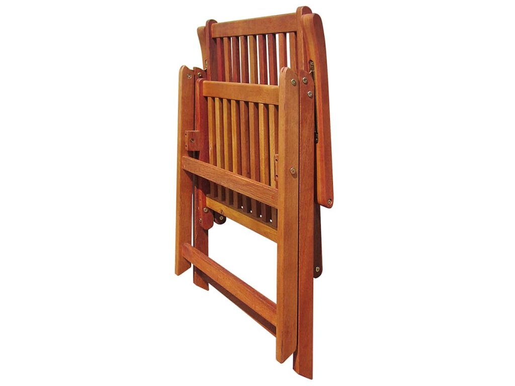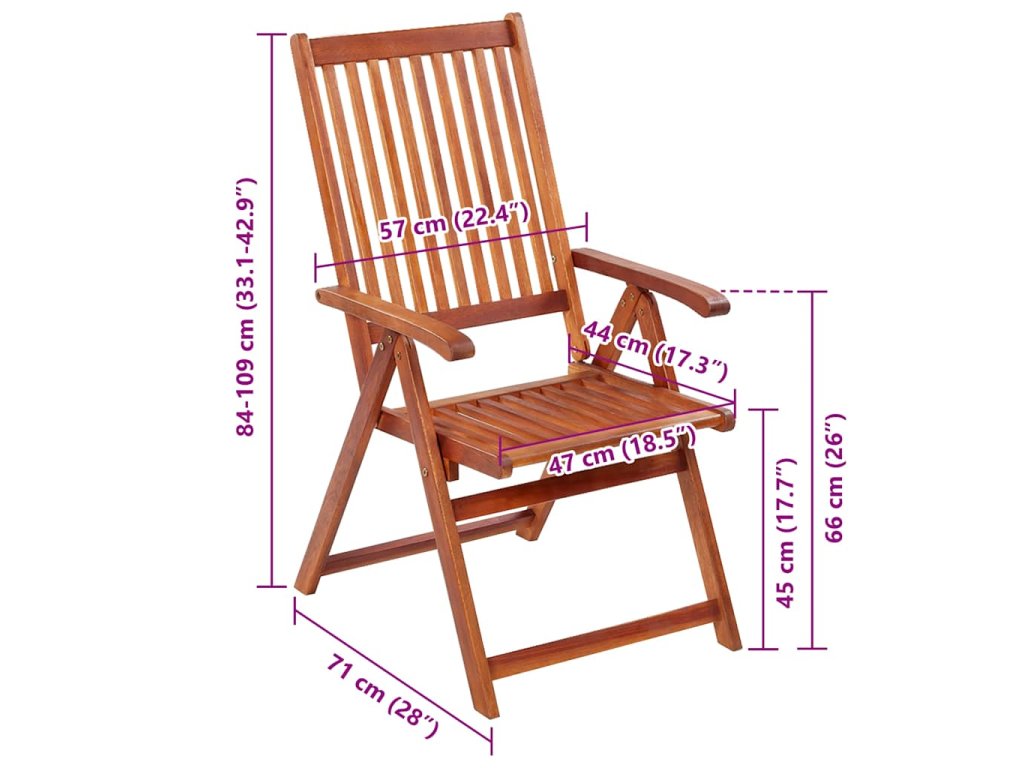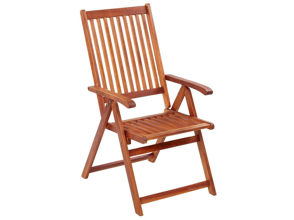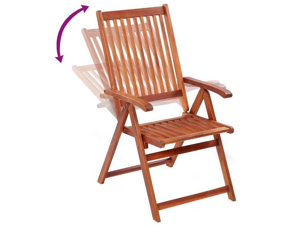 Jedálenská súprava je vyrobená z vysokokvalitného akáciového dreva. Ide o tvrdé tropické drevo, ktoré je skutočne trvácne a odolné voči poveternostným vplyom. Povrch s olejovým náterom sa dá ľahko očistiť pomocou navlhčenej handričky. Stolička sa dá sklopiť do 5 polôh, a tak vám poskytne optimálne pohodlie pri sedení. Navyše sa dá poskladať, aby nezaberala veľa miesta, keď sa nepoužíva.