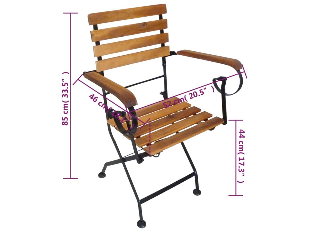Skladacie stoličky sú vyrobené z akáciového masívu a robustnej ocele, vďaka čomu sú veľmi trvácne a odolné voči poveternostným vplyvom. Stoličky sa dajú ľahko očistiť pomocou navlhčenej handričky. Súprava sa dá poskladať, aby nezaberala veľa miesta, keď sa nepoužíva. Montáž je jednoduchá.
