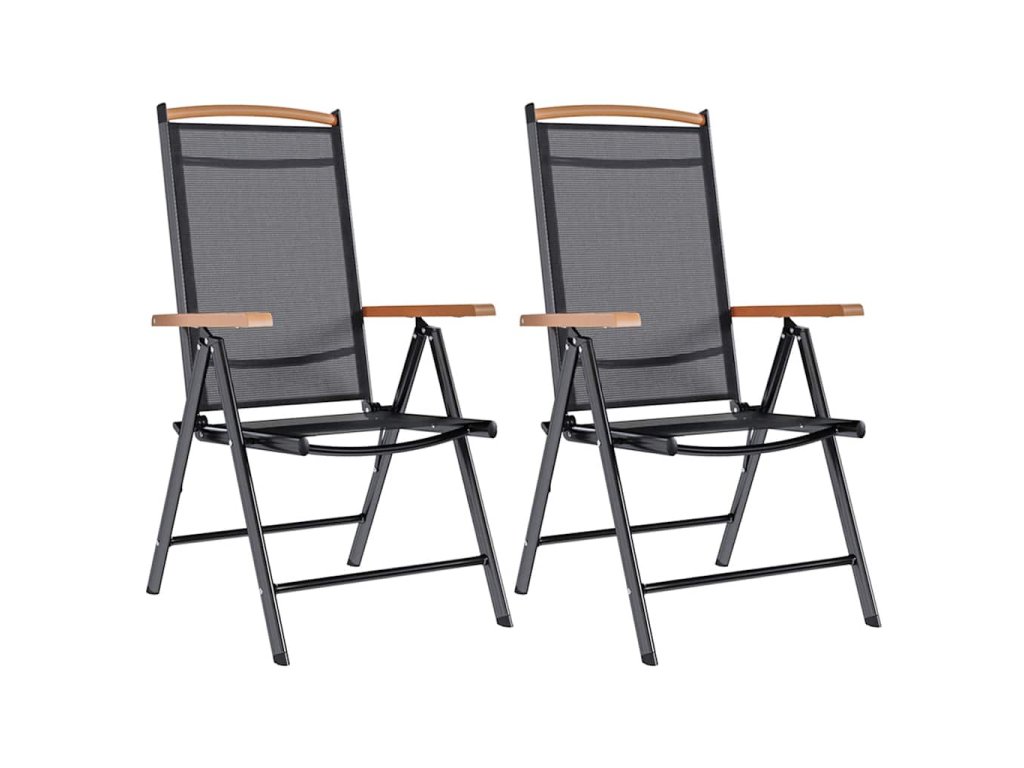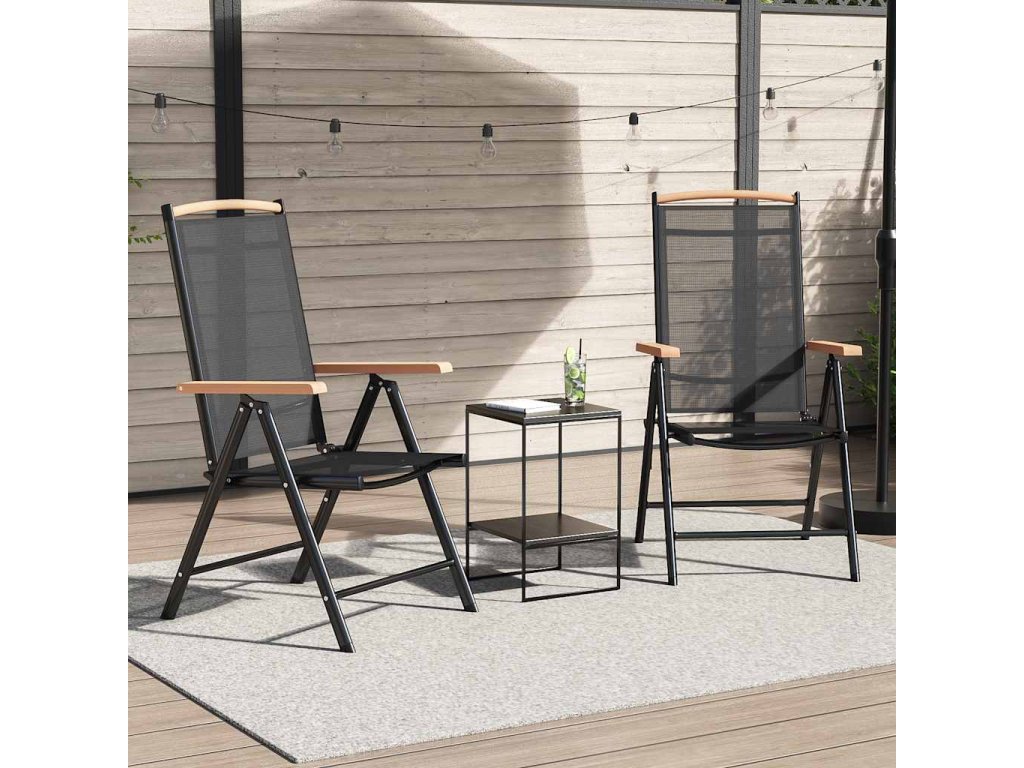 Vďaka hliníkovému rámu s práškovým nástrekom sú stoličky veľmi pevné a odolné. Záhradné stoličky majú na dotyk mäkké textilné sedadlo a operadlo odolné voči poveternostným vplyvom a dajú sa nastaviť do 7 polôh, takže vždy nájdete tú najpohodlnejšiu polohu na sedenie. Opierky rúk a horná lišta dodávajú stoličkám štýlový vzhľad. Vďaka ľahkej konštrukcii je možné stoličky bez námahy presúvať. Stoličky sa dajú jednoducho poskladať, aby nezaberali veľa miesta, keď sa nepoužívajú.