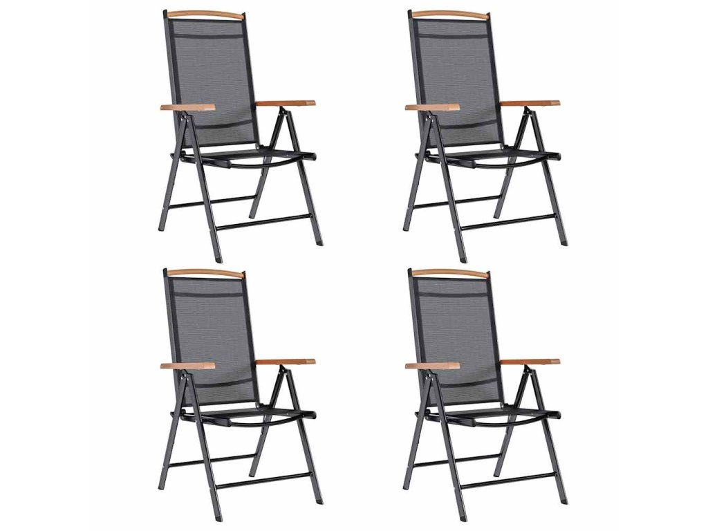 Vďaka hliníkovému rámu s práškovým nástrekom sú stoličky veľmi pevné a odolné. Záhradné stoličky majú na dotyk mäkké textilné sedadlo a operadlo odolné voči poveternostným vplyvom a dajú sa nastaviť do 7 polôh, takže vždy nájdete tú najpohodlnejšiu polohu na sedenie. Opierky rúk a horná lišta dodávajú stoličkám štýlový vzhľad. Vďaka ľahkej konštrukcii je možné stoličky bez námahy presúvať. Stoličky sa dajú jednoducho poskladať, aby nezaberali veľa miesta, keď sa nepoužívajú.
