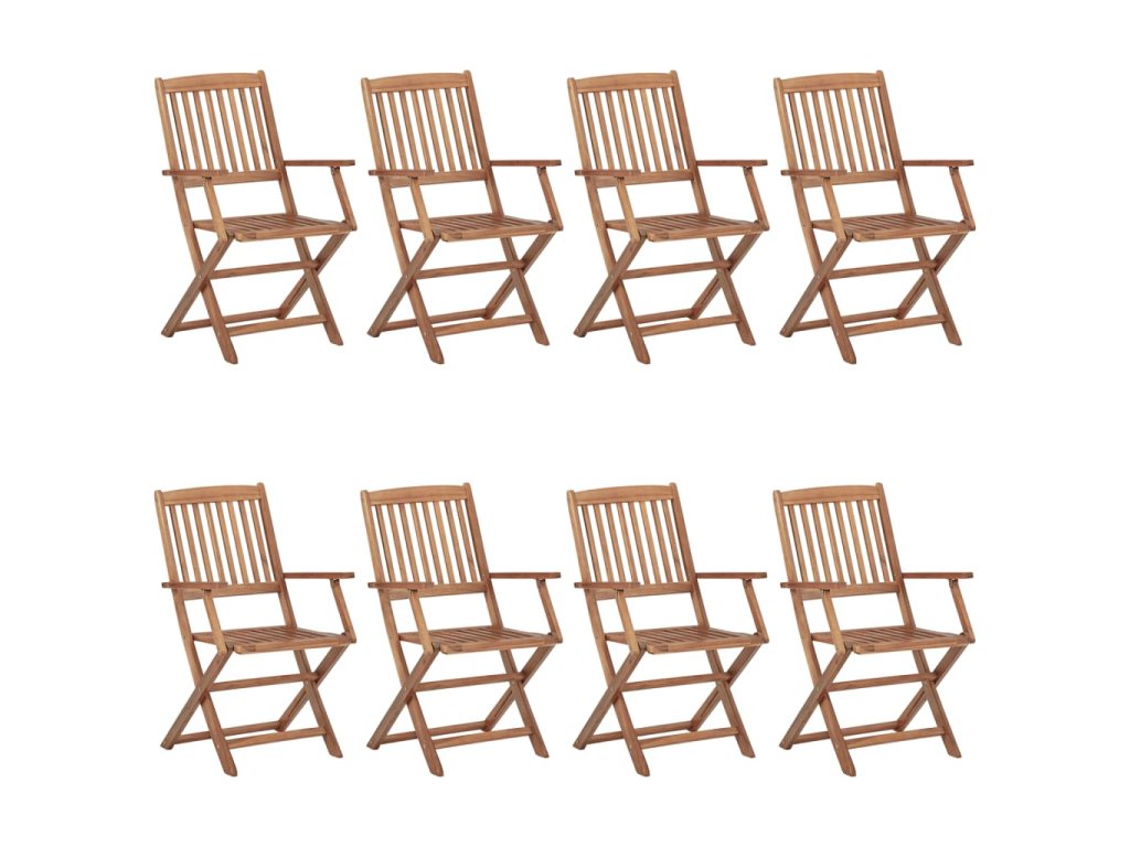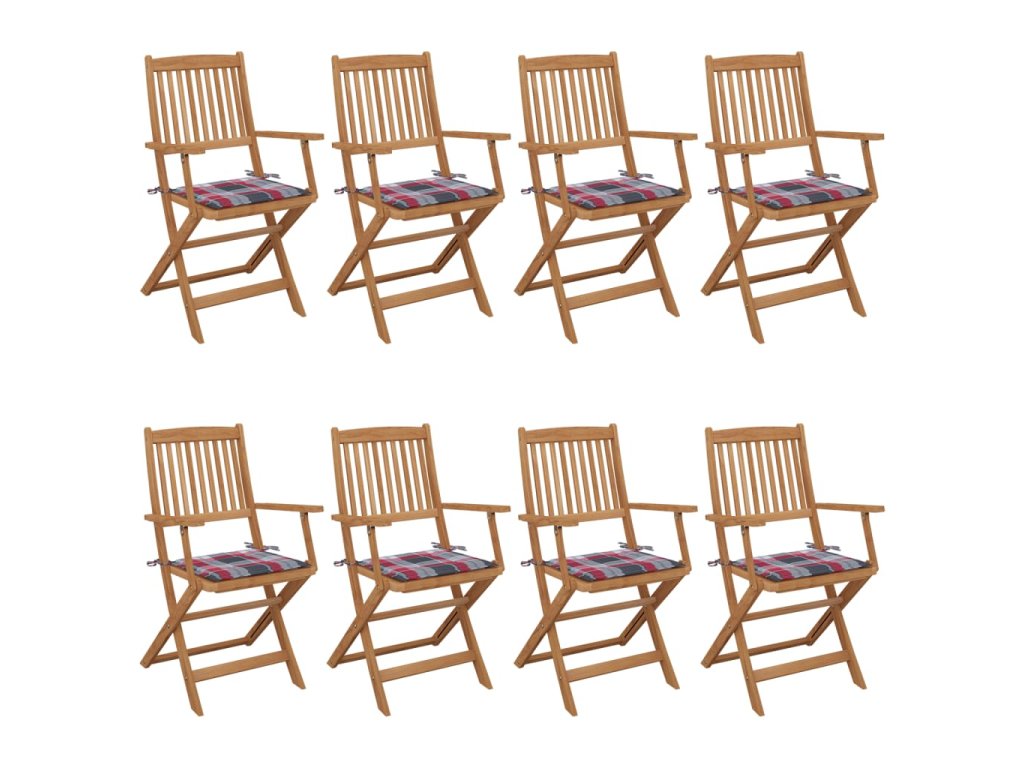 Tieto skladacie stoličky z masívneho akáciového dreva s podložkami poskytujú ideálne miesto na odpočinok a užívanie si slnečných lúčov na záhrade alebo terase.