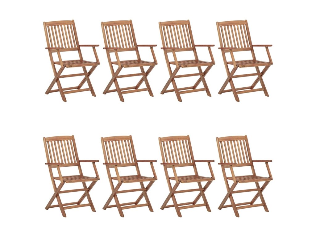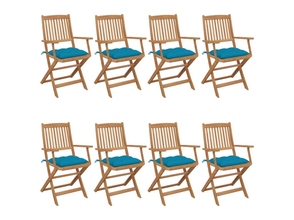 Tieto skladacie stoličky z masívneho akáciového dreva s podložkami poskytujú ideálne miesto na odpočinok a užívanie si slnečných lúčov na záhrade alebo terase.