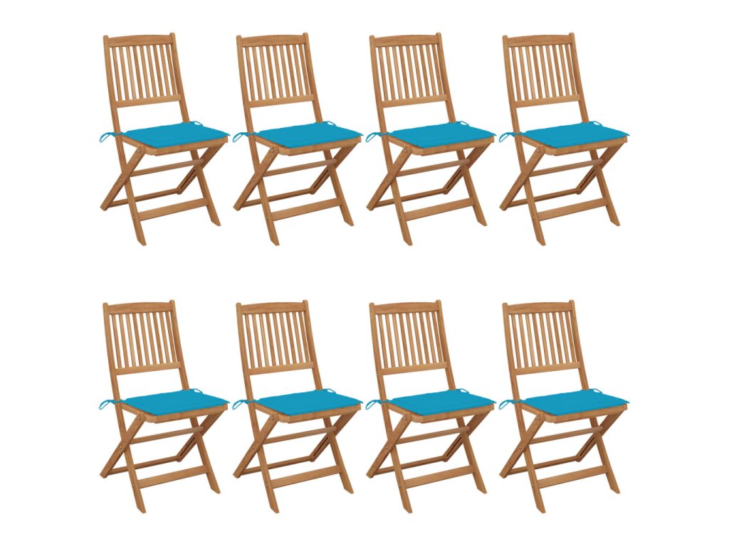 Tieto skladacie stoličky z masívneho akáciového dreva s podložkami poskytujú ideálne miesto na odpočinok a užívanie si slnečných lúčov na záhrade alebo terase.