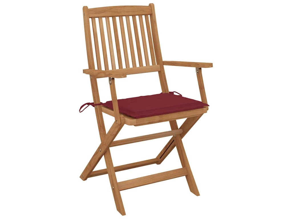 Tieto skladacie stoličky z masívneho akáciového dreva s podložkami poskytujú ideálne miesto na odpočinok a užívanie si slnečných lúčov na záhrade alebo terase.