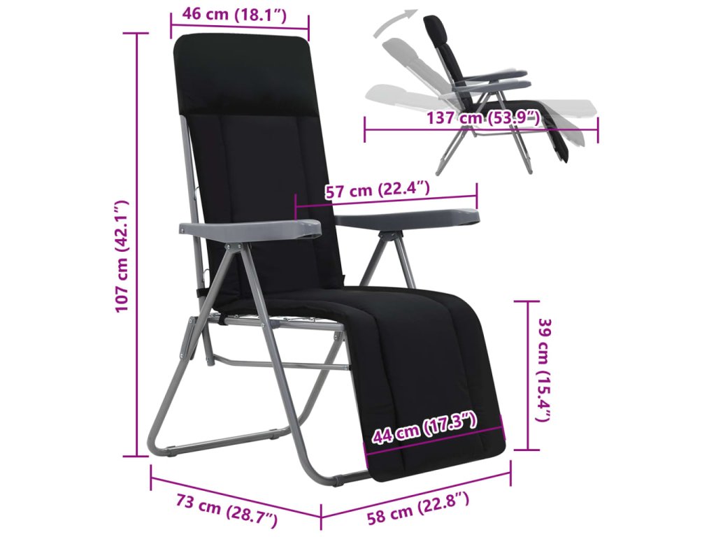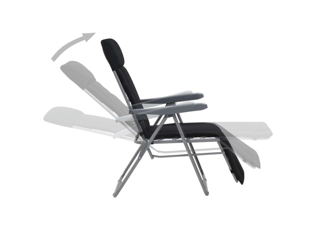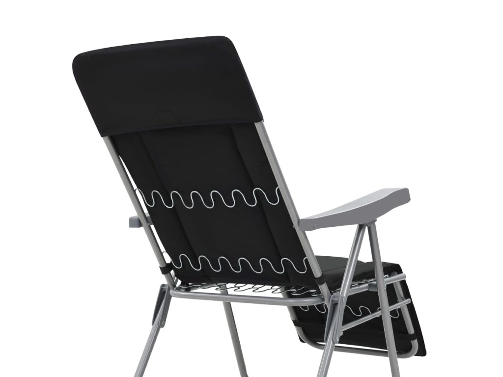 Obidve kempingové stoličky majú rám z vysokokvalitnej ocele, vďaka čomu sú veľmi trvácne a pevné. Stolička, ktorá sa dá nastaviť do 5 polôh, je vybavená podložkou so špongiovitou výplňou, ktorá sa rýchlo vráti do svojho pôvodného tvaru a je veľmi pohodlná. Vďaka nastaviteľnému operadlu, opierke na nohy a extra hrubej opierke hlavy si počas poobedňajšieho odpočinku vždy nájdete tú najpohodlnejšiu polohu.