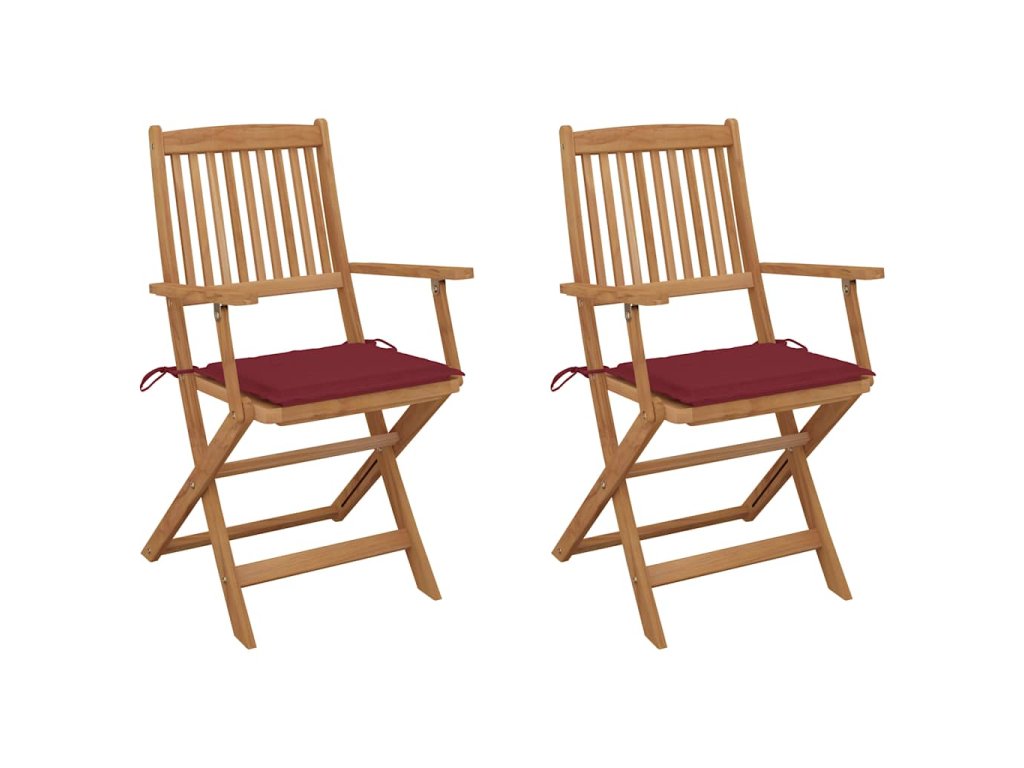 Tieto skladacie stoličky z masívneho akáciového dreva s podložkami poskytujú ideálne miesto na odpočinok a užívanie si slnečných lúčov na záhrade alebo terase.