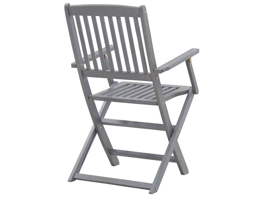 Tieto jedálenské stoličky sú vyrobené z masívneho akáciového dreva, tropického tvrdého dreva, ktoré je odolné voči poveternostným vplyvom a trvácne pre dlhé roky používania. Akáciový masív má dostatočnú silu, aby uniesol zaťaženie, ale odolá aj dlhodobému používaniu. Sivý premývaný povrch sa ľahko čistí vlhkou handričkou. Keď sa stoličky nepoužívajú, dajú sa sklopiť, aby sa ušetrilo miesto. Pribalený vankúš poskytuje vysoké pohodlie pri oddychu alebo stolovaní. Každý vankúš má dve sady šnúrok, pomocou ktorých ho pevne pripevníte k stoličke.