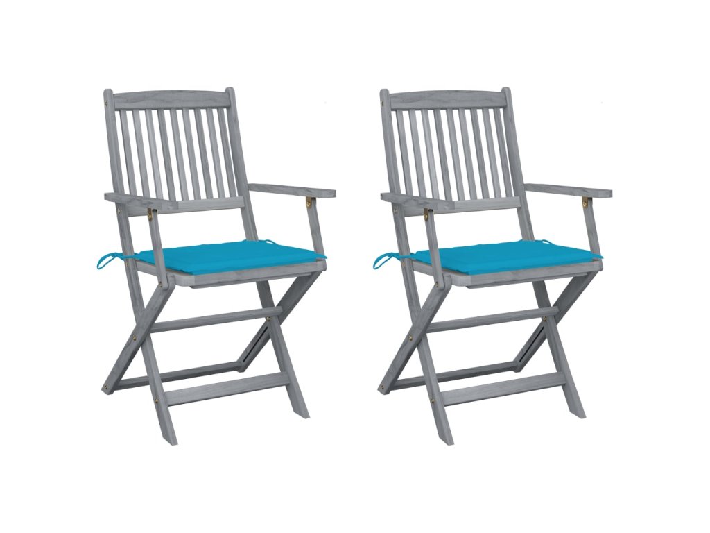 Tieto jedálenské stoličky sú vyrobené z masívneho akáciového dreva, tropického tvrdého dreva, ktoré je odolné voči poveternostným vplyvom a trvácne pre dlhé roky používania. Akáciový masív má dostatočnú silu, aby uniesol zaťaženie, ale odolá aj dlhodobému používaniu. Sivý premývaný povrch sa ľahko čistí vlhkou handričkou. Keď sa stoličky nepoužívajú, dajú sa sklopiť, aby sa ušetrilo miesto. Pribalený vankúš poskytuje vysoké pohodlie pri oddychu alebo stolovaní. Každý vankúš má dve sady šnúrok, pomocou ktorých ho pevne pripevníte k stoličke.