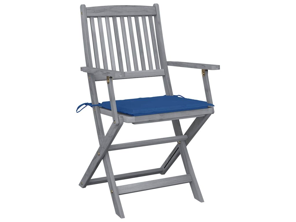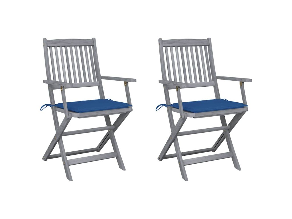 Tieto jedálenské stoličky sú vyrobené z masívneho akáciového dreva, tropického tvrdého dreva, ktoré je odolné voči poveternostným vplyvom a trvácne pre dlhé roky používania. Akáciový masív má dostatočnú silu, aby uniesol zaťaženie, ale odolá aj dlhodobému používaniu. Sivý premývaný povrch sa ľahko čistí vlhkou handričkou. Keď sa stoličky nepoužívajú, dajú sa sklopiť, aby sa ušetrilo miesto. Pribalený vankúš poskytuje vysoké pohodlie pri oddychu alebo stolovaní. Každý vankúš má dve sady šnúrok, pomocou ktorých ho pevne pripevníte k stoličke.