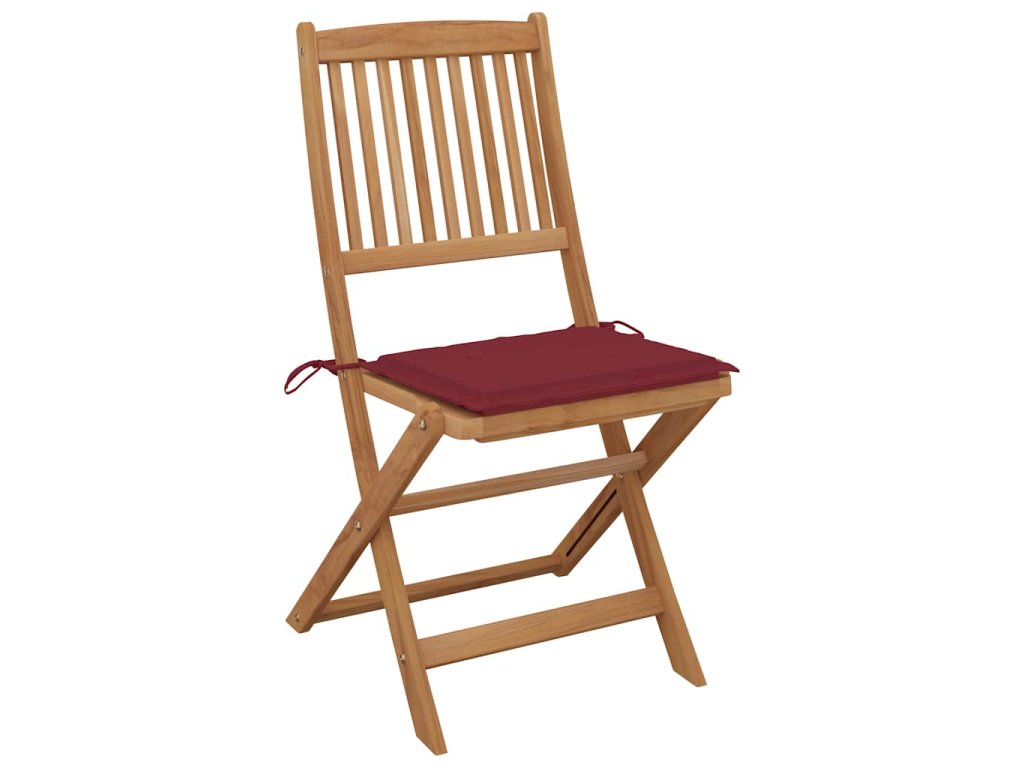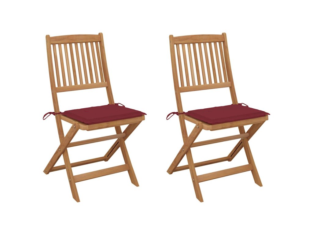 Tieto skladacie stoličky z masívneho akáciového dreva s podložkami poskytujú ideálne miesto na odpočinok a užívanie si slnečných lúčov na záhrade alebo terase.