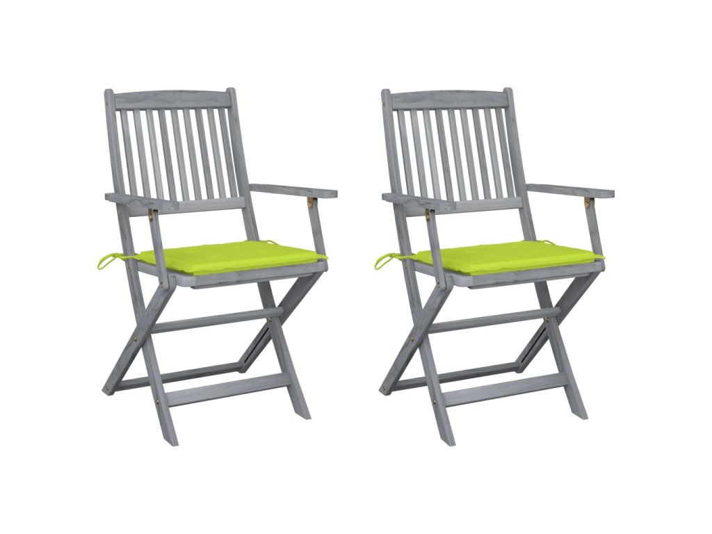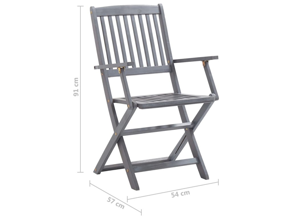 Tieto jedálenské stoličky sú vyrobené z masívneho akáciového dreva, tropického tvrdého dreva, ktoré je odolné voči poveternostným vplyvom a trvácne pre dlhé roky používania. Akáciový masív má dostatočnú silu, aby uniesol zaťaženie, ale odolá aj dlhodobému používaniu. Sivý premývaný povrch sa ľahko čistí vlhkou handričkou. Keď sa stoličky nepoužívajú, dajú sa sklopiť, aby sa ušetrilo miesto. Pribalený vankúš poskytuje vysoké pohodlie pri oddychu alebo stolovaní. Každý vankúš má dve sady šnúrok, pomocou ktorých ho pevne pripevníte k stoličke.