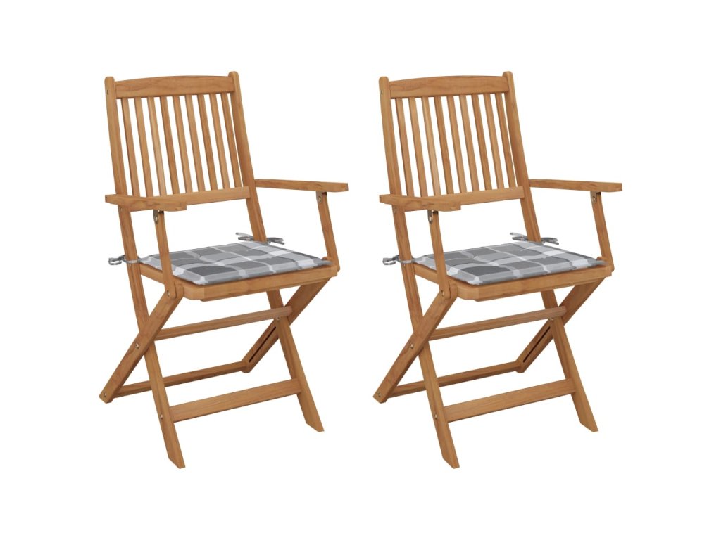 Tieto skladacie stoličky z masívneho akáciového dreva s podložkami poskytujú ideálne miesto na odpočinok a užívanie si slnečných lúčov na záhrade alebo terase.