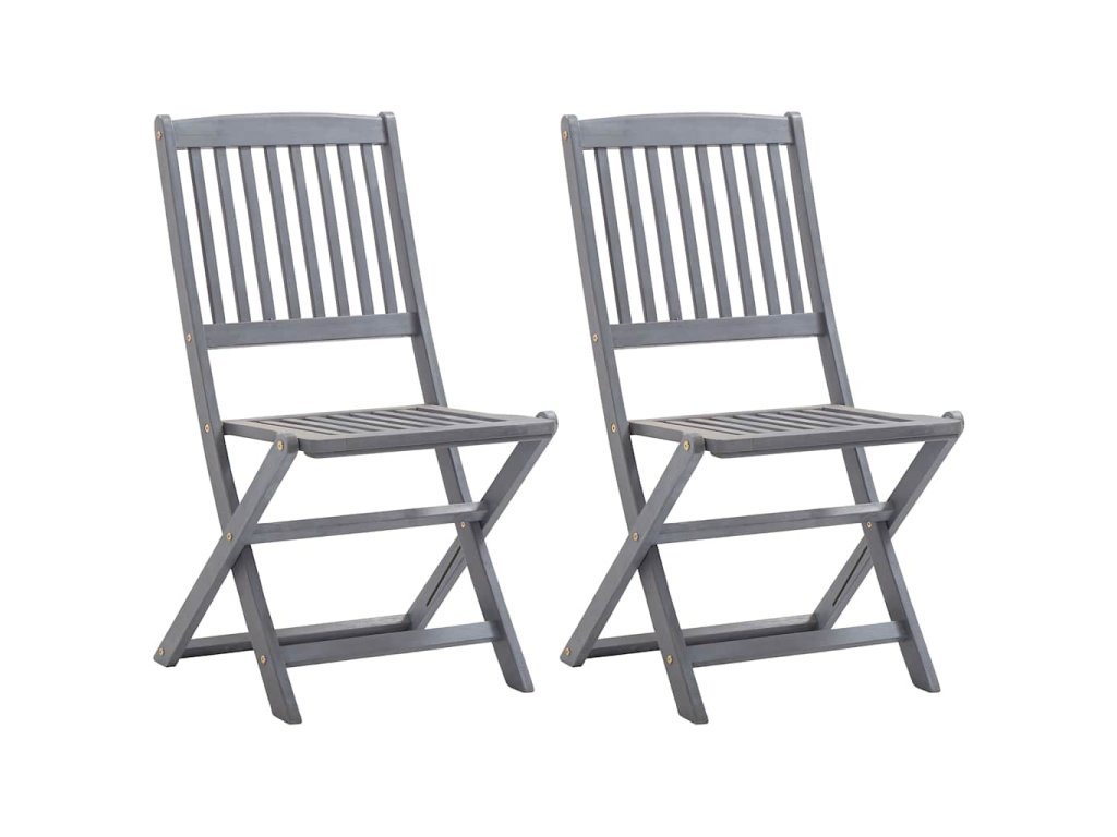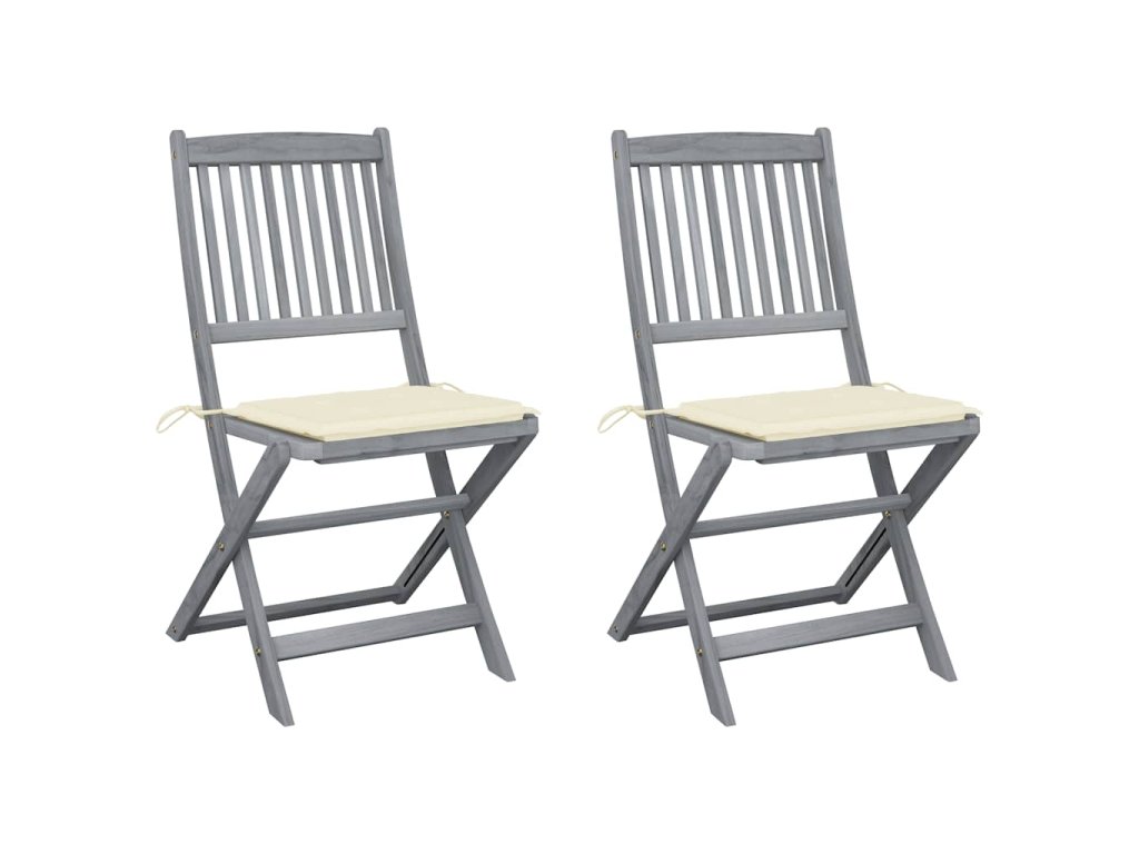 Tieto jedálenské stoličky sú vyrobené z masívneho akáciového dreva, tropického tvrdého dreva, ktoré je odolné voči poveternostným vplyvom a trvácne pre dlhé roky používania. Akáciový masív má dostatočnú silu, aby uniesol zaťaženie, ale odolá aj dlhodobému používaniu. Sivý premývaný povrch sa ľahko čistí vlhkou handričkou. Keď sa stoličky nepoužívajú, dajú sa sklopiť, aby sa ušetrilo miesto. Pribalený vankúš poskytuje vysoké pohodlie pri oddychu alebo stolovaní. Každý vankúš má dve sady šnúrok, pomocou ktorých ho pevne pripevníte k stoličke.