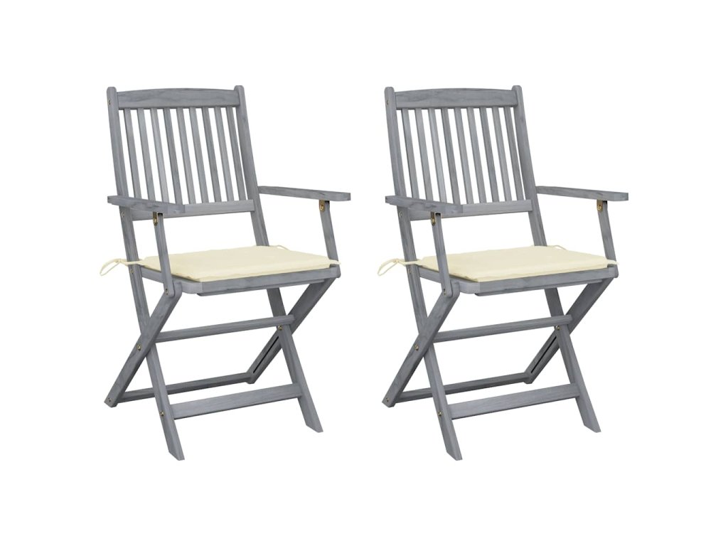 Tieto jedálenské stoličky sú vyrobené z masívneho akáciového dreva, tropického tvrdého dreva, ktoré je odolné voči poveternostným vplyvom a trvácne pre dlhé roky používania. Akáciový masív má dostatočnú silu, aby uniesol zaťaženie, ale odolá aj dlhodobému používaniu. Sivý premývaný povrch sa ľahko čistí vlhkou handričkou. Keď sa stoličky nepoužívajú, dajú sa sklopiť, aby sa ušetrilo miesto. Pribalený vankúš poskytuje vysoké pohodlie pri oddychu alebo stolovaní. Každý vankúš má dve sady šnúrok, pomocou ktorých ho pevne pripevníte k stoličke.