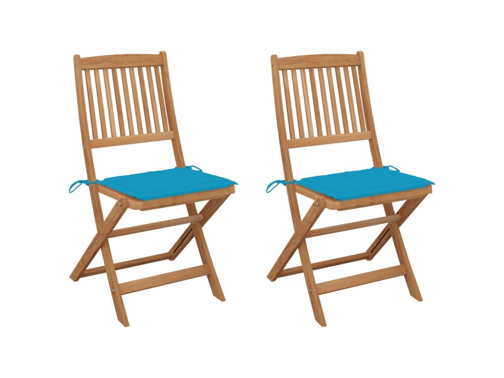 Tieto skladacie stoličky z masívneho akáciového dreva s podložkami poskytujú ideálne miesto na odpočinok a užívanie si slnečných lúčov na záhrade alebo terase.