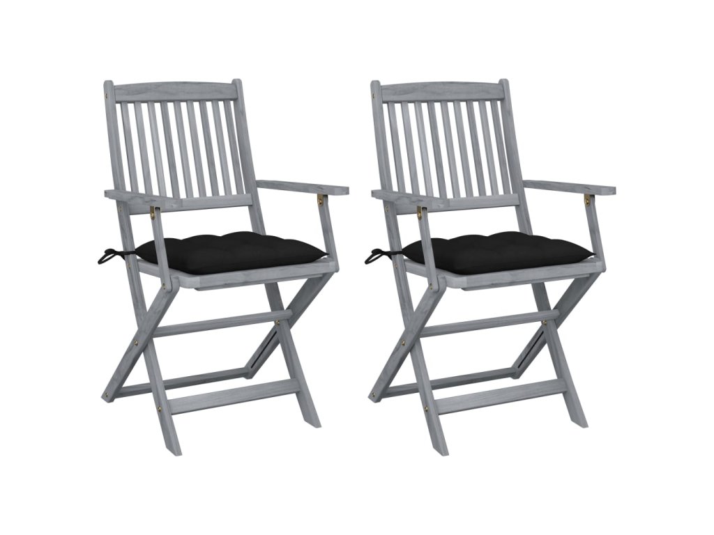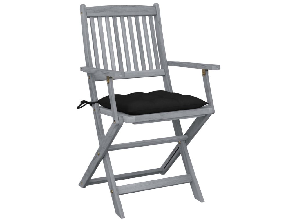 Tieto jedálenské stoličky sú vyrobené z masívneho akáciového dreva, tropického tvrdého dreva, ktoré je odolné voči poveternostným vplyvom a trvácne pre dlhé roky používania. Akáciový masív má dostatočnú silu, aby uniesol zaťaženie, ale odolá aj dlhodobému používaniu. Sivý premývaný povrch sa ľahko čistí vlhkou handričkou. Keď sa stoličky nepoužívajú, dajú sa sklopiť, aby sa ušetrilo miesto. Pribalený vankúš poskytuje vysoké pohodlie pri oddychu alebo stolovaní. Každý vankúš má dve sady šnúrok, pomocou ktorých ho pevne pripevníte k stoličke.