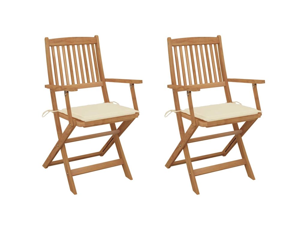 Tieto skladacie stoličky z masívneho akáciového dreva s podložkami poskytujú ideálne miesto na odpočinok a užívanie si slnečných lúčov na záhrade alebo terase.