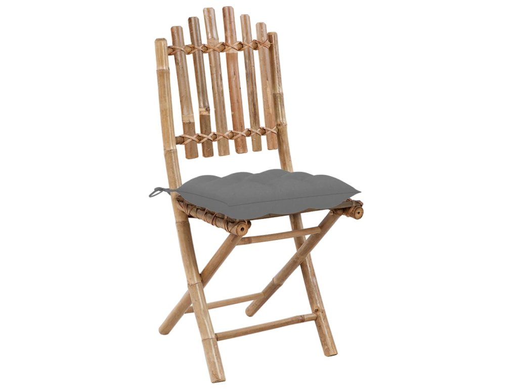 Vonkajšia stolička je vyrobená z masívneho bambusu, a je pevná a odolná. Je tiež odolná voči poveternostným vplyvom, vodeodolná a ľahko sa čistí vlhkou handričkou. Jedálenská stolička je skladacia, aby ste ušetrili úložný priestor, keď ju nepoužívate. Pribalená podložka poskytuje ďalšie pohodlie počas leňošenia. Je vyrobená zo 100% polyesteru, takže je pevná a dostatočne odolná, a vhodná pre vonkajšie použitie. Každý vankúš má dve sady šnúrok, ktorými sa pevne uchytí k stoličke.