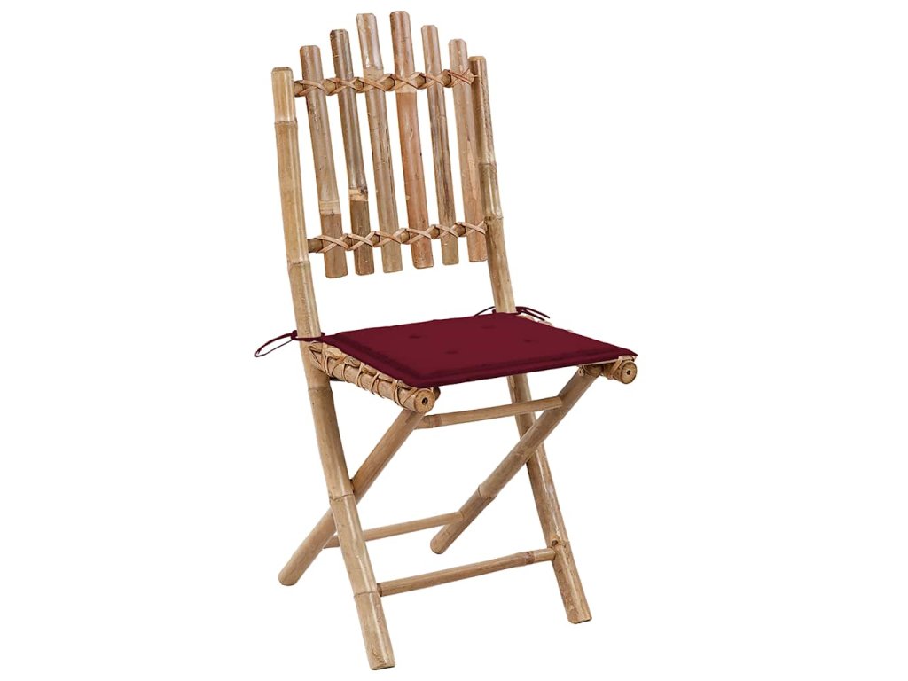 Vonkajšia stolička je vyrobená z masívneho bambusu, a je pevná a odolná. Je tiež odolná voči poveternostným vplyvom, vodeodolná a ľahko sa čistí vlhkou handričkou. Jedálenská stolička je skladacia, aby ste ušetrili úložný priestor, keď ju nepoužívate. Pribalená podložka poskytuje ďalšie pohodlie počas leňošenia. Je vyrobená zo 100% polyesteru, takže je pevná a dostatočne odolná, a vhodná pre vonkajšie použitie. Každý vankúš má dve sady šnúrok, ktorými sa pevne uchytí k stoličke.