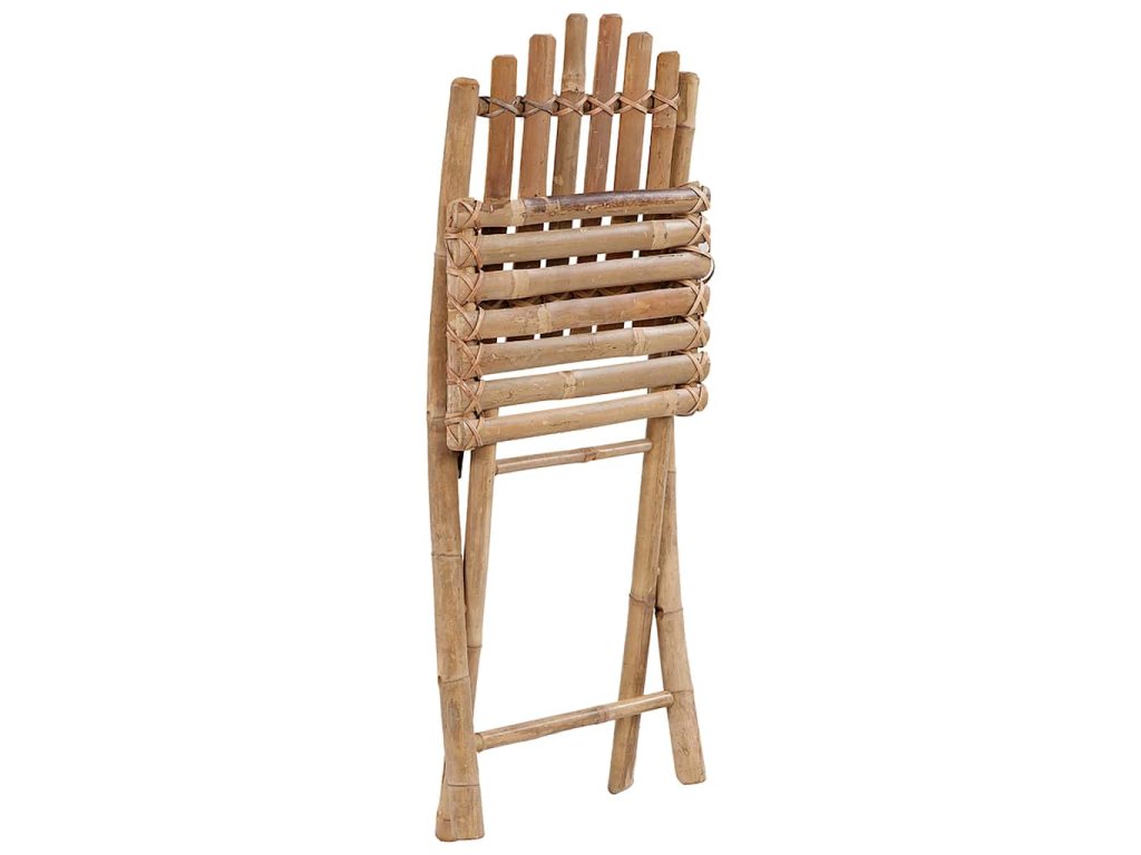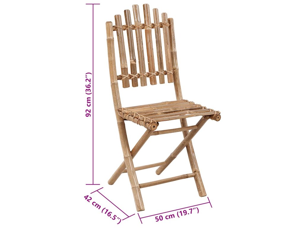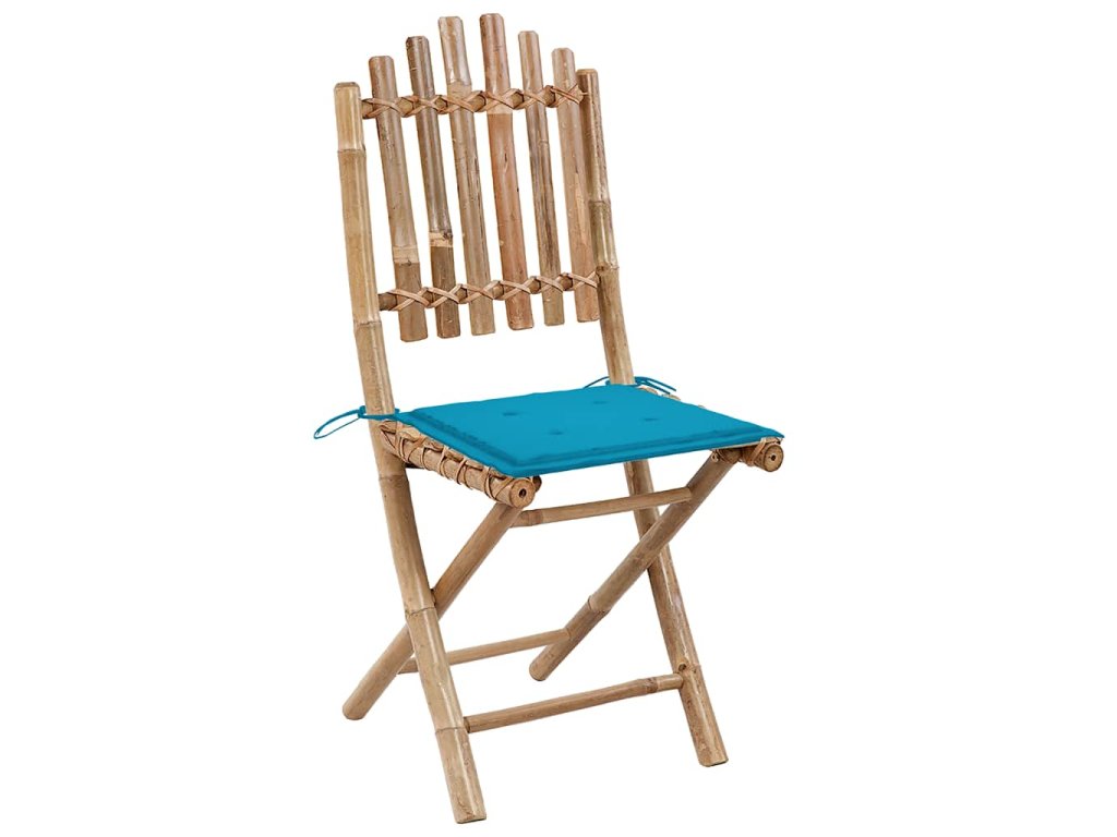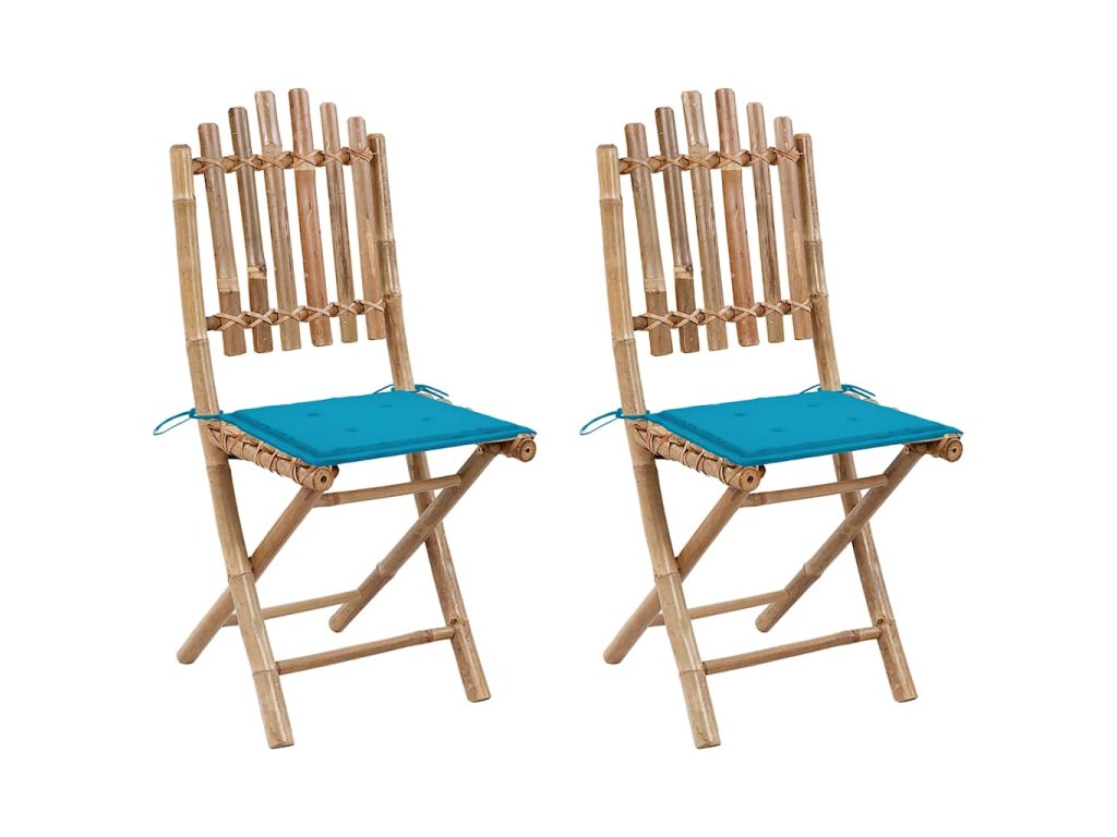 Vonkajšia stolička je vyrobená z masívneho bambusu, a je pevná a odolná. Je tiež odolná voči poveternostným vplyvom, vodeodolná a ľahko sa čistí vlhkou handričkou. Jedálenská stolička je skladacia, aby ste ušetrili úložný priestor, keď ju nepoužívate. Pribalená podložka poskytuje ďalšie pohodlie počas leňošenia. Je vyrobená zo 100% polyesteru, takže je pevná a dostatočne odolná, a vhodná pre vonkajšie použitie. Každý vankúš má dve sady šnúrok, ktorými sa pevne uchytí k stoličke.