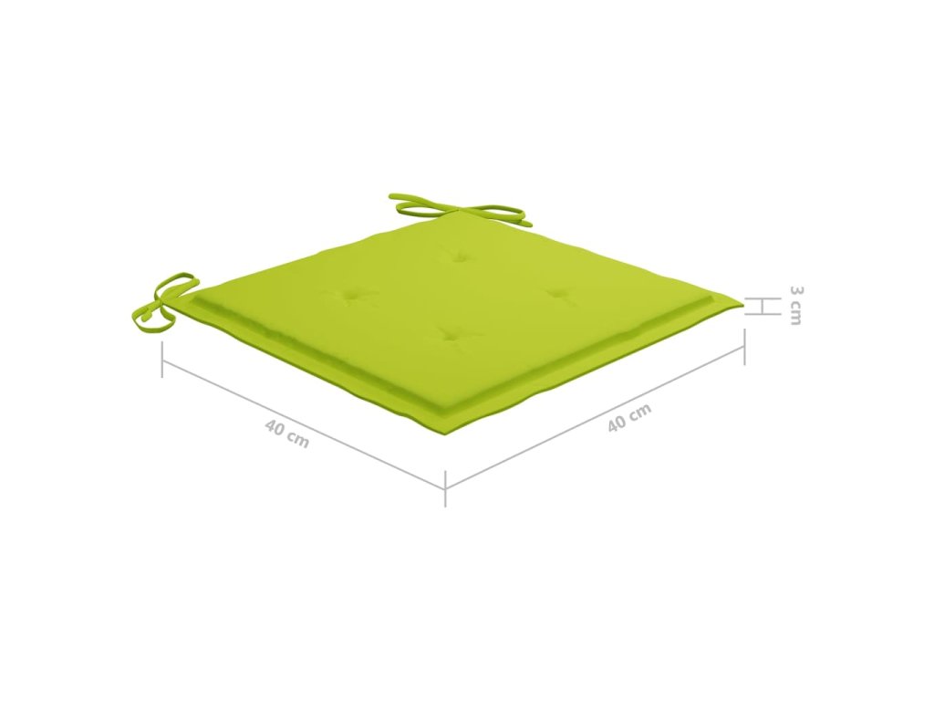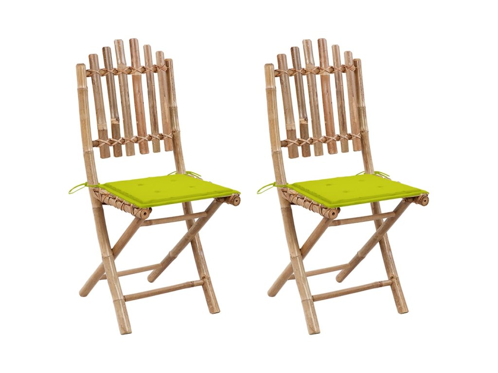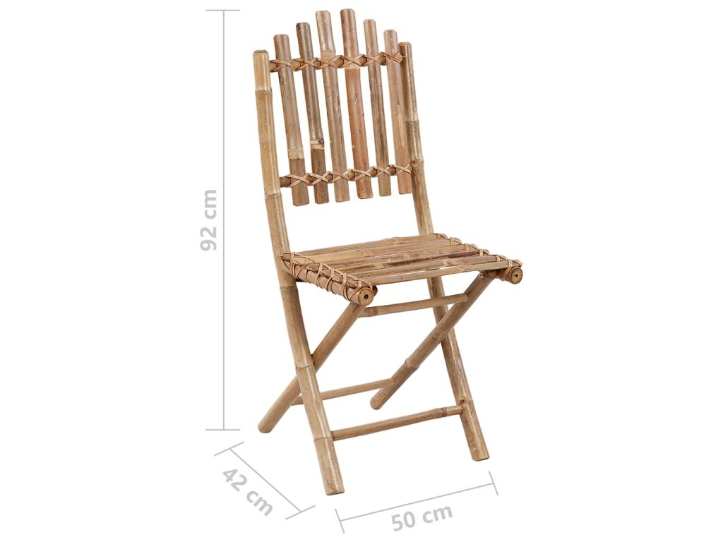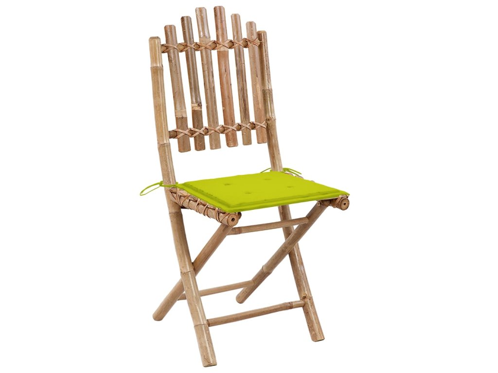 Vonkajšia stolička je vyrobená z masívneho bambusu, a je pevná a odolná. Je tiež odolná voči poveternostným vplyvom, vodeodolná a ľahko sa čistí vlhkou handričkou. Jedálenská stolička je skladacia, aby ste ušetrili úložný priestor, keď ju nepoužívate. Pribalená podložka poskytuje ďalšie pohodlie počas leňošenia. Je vyrobená zo 100% polyesteru, takže je pevná a dostatočne odolná, a vhodná pre vonkajšie použitie. Každý vankúš má dve sady šnúrok, ktorými sa pevne uchytí k stoličke.