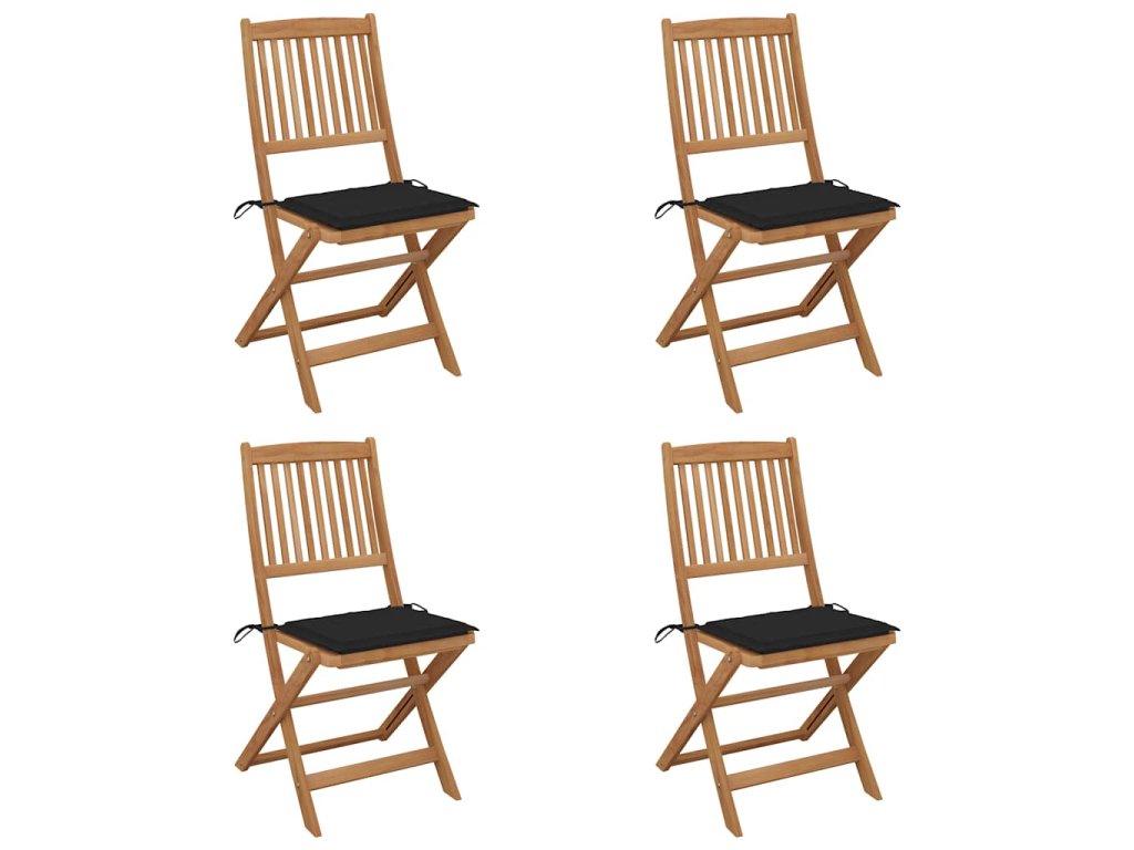 Tieto skladacie stoličky z masívneho akáciového dreva s podložkami poskytujú ideálne miesto na odpočinok a užívanie si slnečných lúčov na záhrade alebo terase.