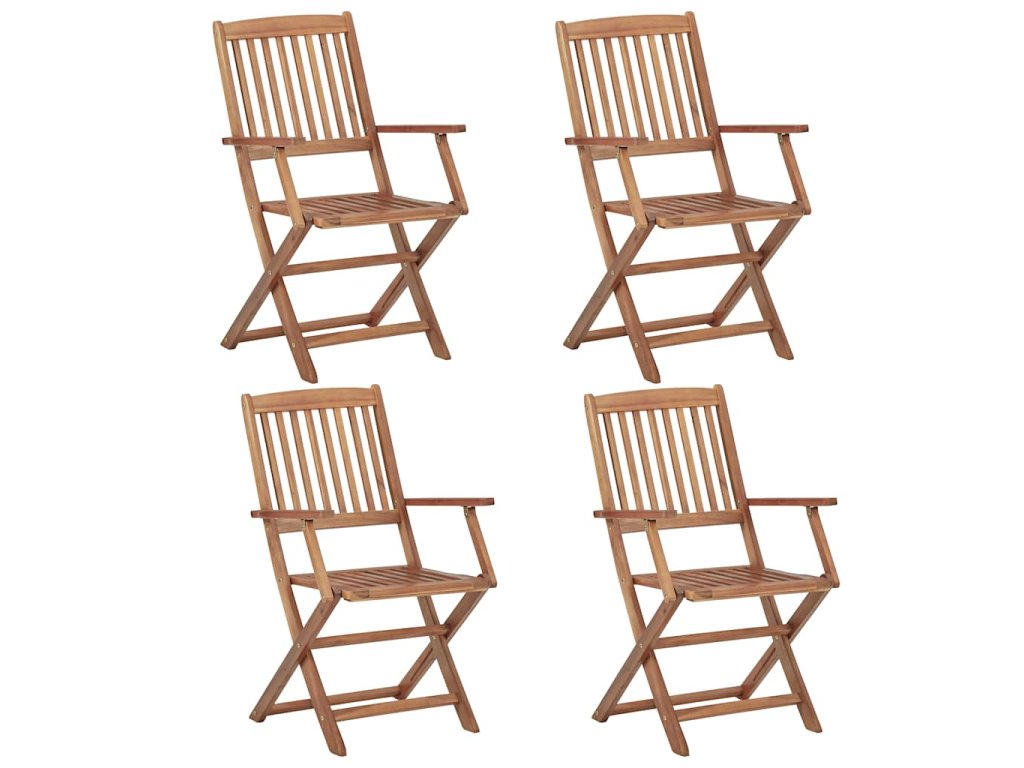 Tieto skladacie stoličky z masívneho akáciového dreva s podložkami poskytujú ideálne miesto na odpočinok a užívanie si slnečných lúčov na záhrade alebo terase.
