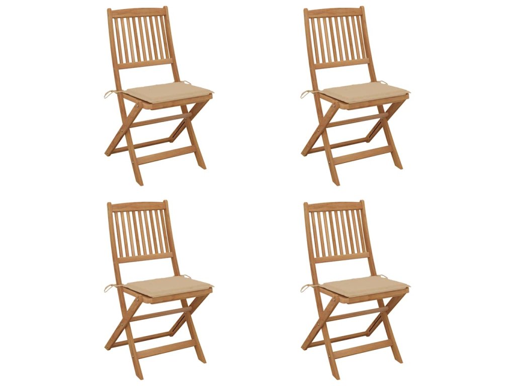 Tieto skladacie stoličky z masívneho akáciového dreva s podložkami poskytujú ideálne miesto na odpočinok a užívanie si slnečných lúčov na záhrade alebo terase.