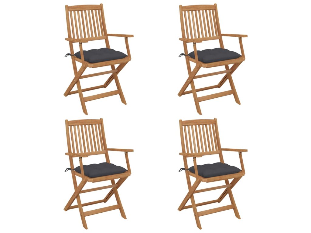 Tieto skladacie stoličky z masívneho akáciového dreva s podložkami poskytujú ideálne miesto na odpočinok a užívanie si slnečných lúčov na záhrade alebo terase.