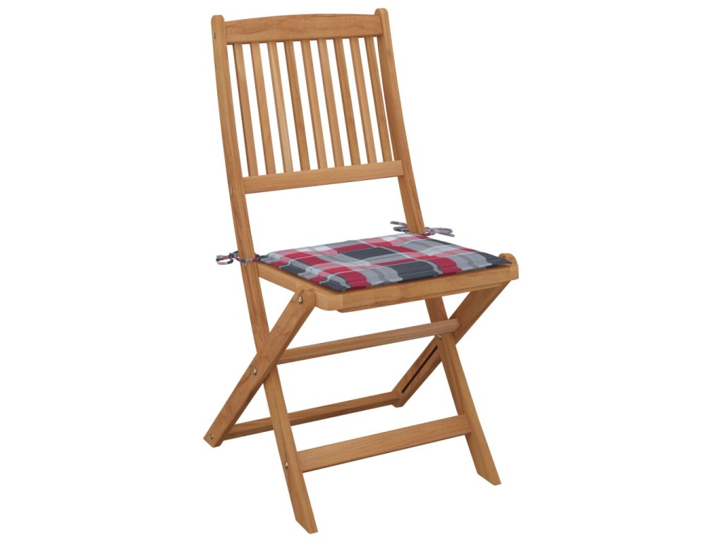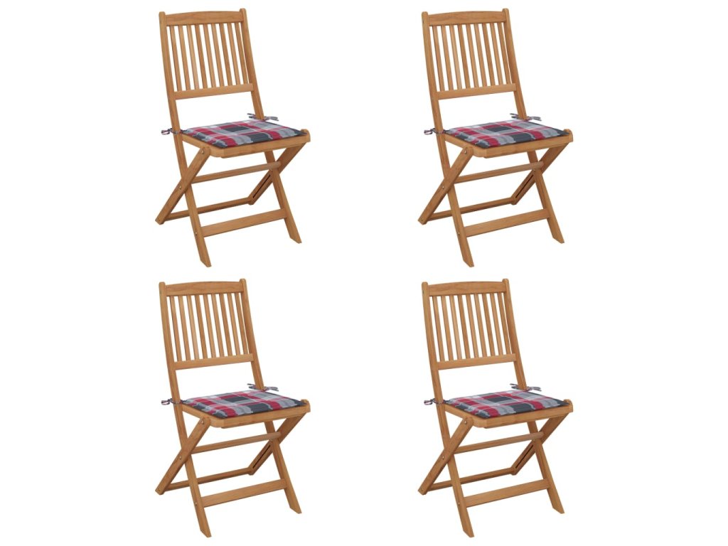 Tieto skladacie stoličky z masívneho akáciového dreva s podložkami poskytujú ideálne miesto na odpočinok a užívanie si slnečných lúčov na záhrade alebo terase.
