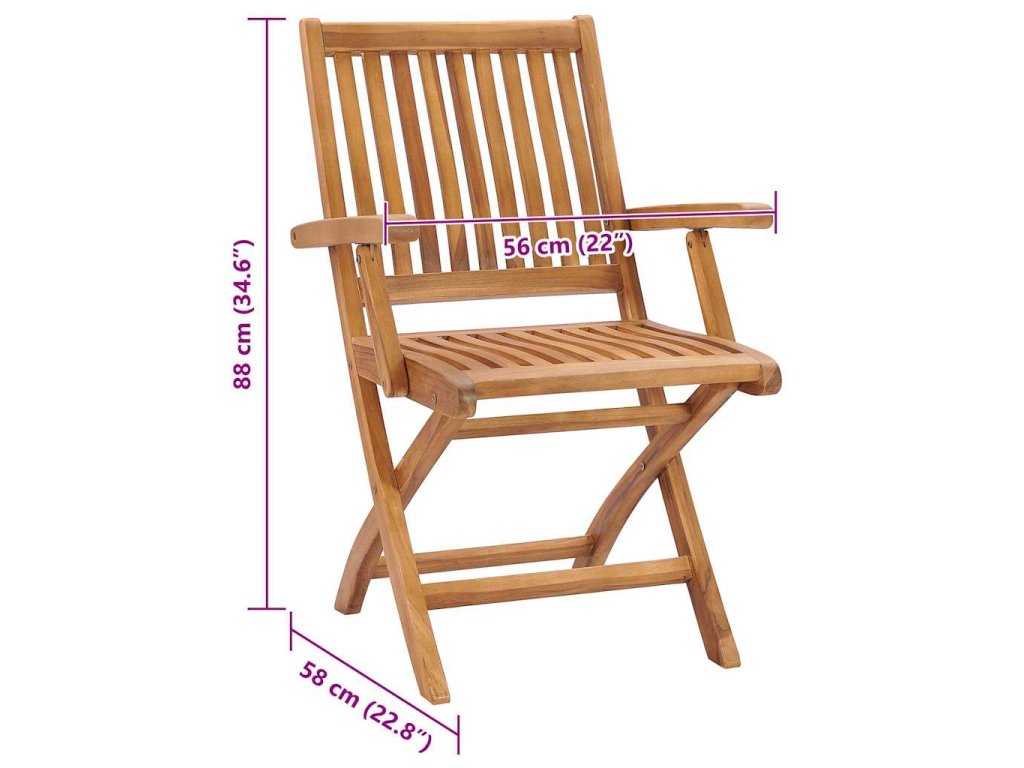 Táto sada tíkového nábytku je vyhotovená z mimoriadne trvácneho tvrdého tíkového dreva, ktoré bolo umelo vysušené v sušiarni a jeho povrch bol následne jemne obrúsený, aby získal hladký vzhľad. Tíkové drevo sa vyznačuje výnimočnou pevnosťou a odolnosťou voči poveternostným vplyvom, a tak predstavuje jeden z najvhodnejších materiálov na výrobu záhradného nábytku spomedzi všetkých ostatných druhov dreva. Ak si chcete zaobstarať záhradný nábytok, ktorý vám bude slúžiť dlhé roky, tíkové drevo je pre vás ako stvorené. Vďaka brúsenému povrchu sú jedálenské stoličky odolné voči poveternostným vplyvom a ľahko sa čistia. Môžu sa tiež zložiť a ušetriť tak úložný priestor, keď sa nepoužívajú. Navyše, pribalené vankúše poskytujú ďalšie pohodlie. Každý vankúš má 2 sady šnúrok, ktoré ho pevne prichytia k stoličke.