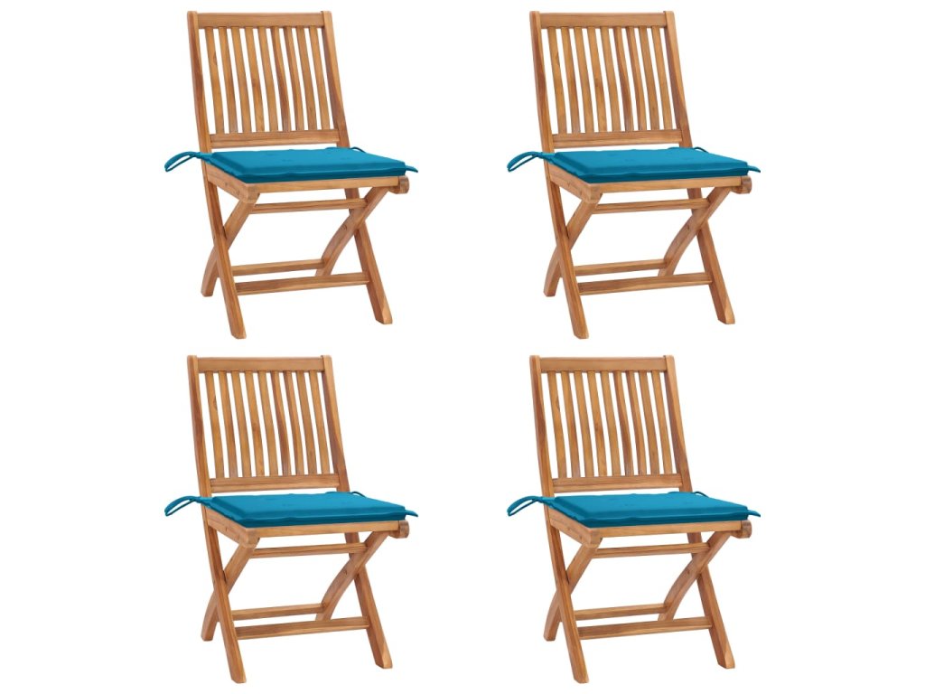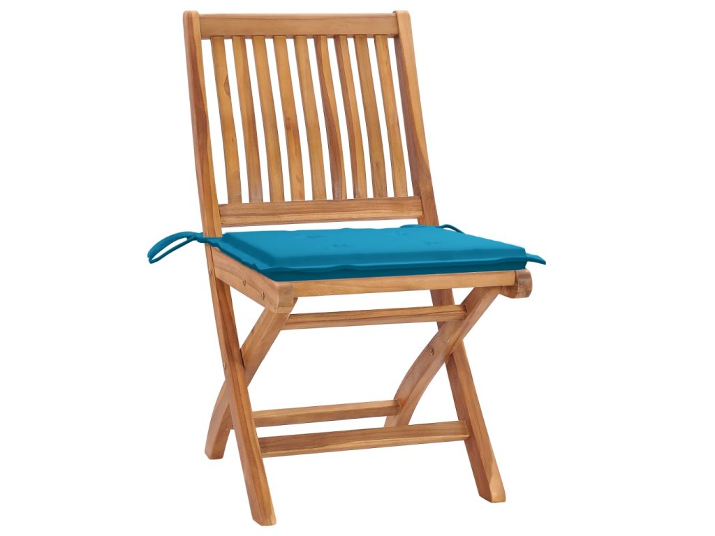 Táto sada tíkového nábytku je vyhotovená z mimoriadne trvácneho tvrdého tíkového dreva, ktoré bolo umelo vysušené v sušiarni a jeho povrch bol následne jemne obrúsený, aby získal hladký vzhľad. Tíkové drevo sa vyznačuje výnimočnou pevnosťou a odolnosťou voči poveternostným vplyvom, a tak predstavuje jeden z najvhodnejších materiálov na výrobu záhradného nábytku spomedzi všetkých ostatných druhov dreva. Ak si chcete zaobstarať záhradný nábytok, ktorý vám bude slúžiť dlhé roky, tíkové drevo je pre vás ako stvorené. Vďaka brúsenému povrchu sú jedálenské stoličky odolné voči poveternostným vplyvom a ľahko sa čistia. Môžu sa tiež zložiť a ušetriť tak úložný priestor, keď sa nepoužívajú. Navyše, pribalené vankúše poskytujú ďalšie pohodlie. Každý vankúš má 2 sady šnúrok, ktoré ho pevne prichytia k stoličke.