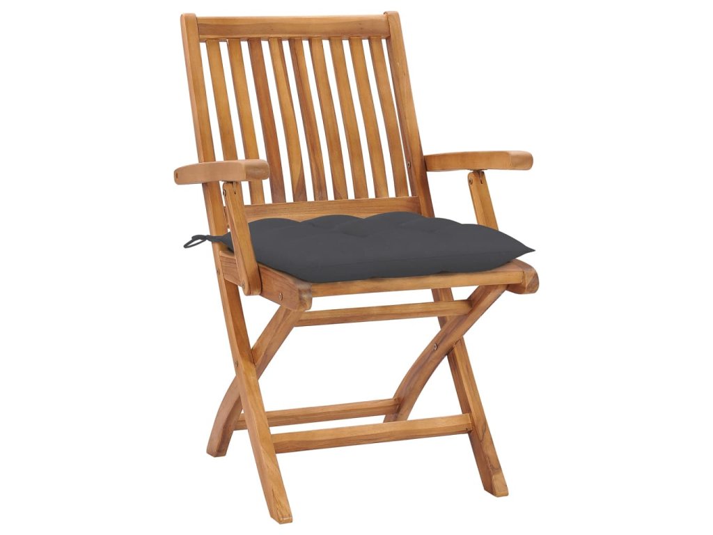 Táto sada tíkového nábytku je vyhotovená z mimoriadne trvácneho tvrdého tíkového dreva, ktoré bolo umelo vysušené v sušiarni a jeho povrch bol následne jemne obrúsený, aby získal hladký vzhľad. Tíkové drevo sa vyznačuje výnimočnou pevnosťou a odolnosťou voči poveternostným vplyvom, a tak predstavuje jeden z najvhodnejších materiálov na výrobu záhradného nábytku spomedzi všetkých ostatných druhov dreva. Ak si chcete zaobstarať záhradný nábytok, ktorý vám bude slúžiť dlhé roky, tíkové drevo je pre vás ako stvorené. Vďaka brúsenému povrchu sú jedálenské stoličky odolné voči poveternostným vplyvom a ľahko sa čistia. Môžu sa tiež zložiť a ušetriť tak úložný priestor, keď sa nepoužívajú. Navyše, pribalené vankúše poskytujú ďalšie pohodlie. Každý vankúš má 2 sady šnúrok, ktoré ho pevne prichytia k stoličke.